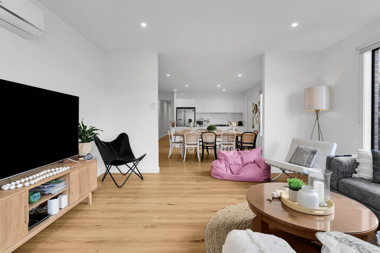 This lovely home offers: Two living areas Sleeps 12 guest Dishwasher and double oven Delonghi Nepresso coffee machine (BYO pods) Rice cooker and Chopsticks Four stools and an inside dining table for ten guests Kids toys Smart TVs, including one in each loungeroom and in a bedroom Blackout blinds and extra blankets High chair and toys and books for kids, games for kids Books and games Stereo Powder room separate. Laundry with washing machine Outside chairs and table for eight BBQ Clothesline Unlimited WIFI Outdoor gas heater Driveway parking Home has CCTV While the garage isn't available for guests, you'll find plenty of room for parking in the long driveway. Your convenience is our priority. HEATING & COOLING Split systems in all the bedrooms and the loungerooms
