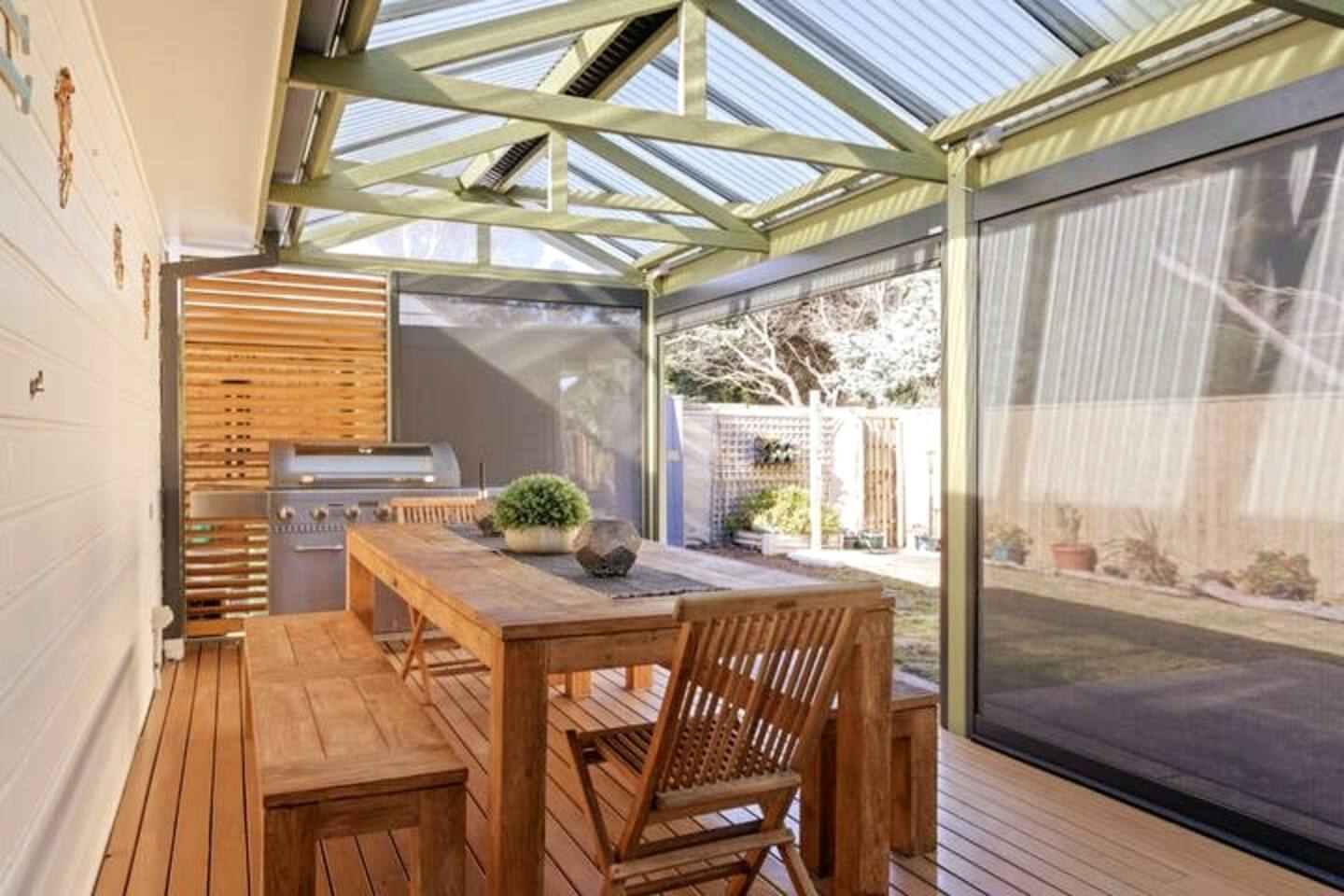 Welcome to Bethel by the Sea, a stunning vacation home that is perfect for your next beach getaway! Our single-story, newly furnished home is located in the heart of Surf Beach and comfortably sleeps 9 people. As soon as you step into our home, you'll be amazed by the beautiful design and thoughtful layout. You'll find plenty of space to relax and unwind in the comfortable living areas, as well as the four bedrooms. Each room is carefully designed to provide the perfect balance of comfort and luxury. But the real showstopper is the rear deck - an amazing space that's perfect for entertaining your family and friends. You'll love the outdoor area, complete with a BBQ and outdoor tables that can accommodate up to 8 guests. Whether you're hosting a summer cookout or simply relaxing with a cup of coffee, this space is perfect for any occasion. We take pride in providing all the little extras that make your stay at Bethel by the Sea unforgettable. You'll find everything you need for a relaxing vacation, including a coffee machine, beautiful furnishings, and an unbeatable location that's just 500m from the beach. Don't miss out on the chance to experience the ultimate beach vacation at Bethel by the Sea. Book now and get ready to create unforgettable memories! The house is in a residential street with surrounding permanent tenants so we only rent to mature guests that will remain respectful to our neighbours. The house is to be used for relaxation-style holidaying; loud parties are prohibited. We hope you enjoy your stay. A quintessential seaside residence where you can enjoy your holiday and just unwind.
