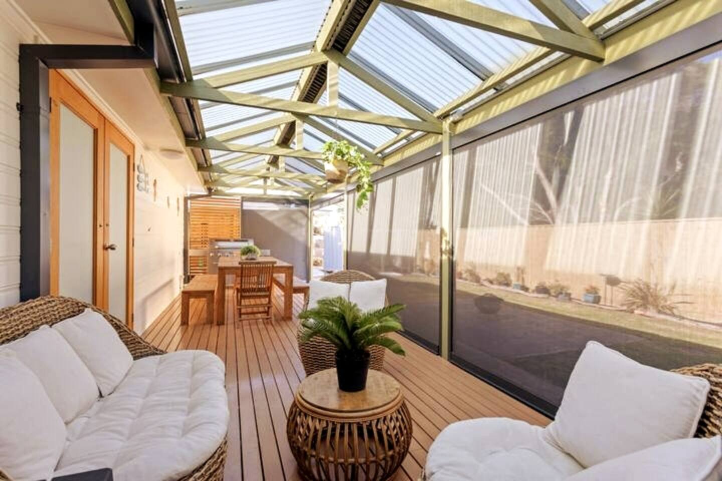 Bedroom 1: 1 x King bed - Sleeps 2 guests Bedroom 2: 1 x Queen bed - Sleeps 2 guests Bedroom 3: 2 x King Single beds - Sleeps 2 guests Bedroom 4: 1 x Tri-Bunk (Double bottom / King Single top) - Sleeps 3 guests What to bring: fitted sheets, flat sheets, pillowcases, beach towels, bath towels, tea towels, hand towels and bathmats. Guests have the choice of: BYO Linen / Towels - Guests bring their own fitted, sheets, flat sheets and pillowcases for each bed. Guests also bring their own beach, bath and tea towels along with hand towels and bathmats. Refer to the home’s description for the bedding configurations. Linen Set Hire - Guests can hire a full linen set for $30 per bed which includes a fitted sheet, flat sheet and pillowcases. Bunk beds are classed as two beds. All beds are the same price. Towel Set Hire - Guests can hire a towel set for $10 per person which includes 1 bath towel and 2 tea towels (for only the first ordered towel set). Bathroom Set Hire - Guests can hire a bathroom set for $10 per bathroom which includes a bathmat and hand towel. Delivery Fee - If any items are hired, there will be a one-off delivery/set-up fee of $40. If the stay is longer than 7 days, ask management for any additional pricing. For linen or towel hires, advise Ready Set Stay with 48 hours' notice as last-minute requests may not be possible. Lost or damaged hired linen/towels may incur costs. Ready Set Stay will assume no linen or towel sets are requested for hire unless advised We ask all guests please clean the BBQ after use, or a $50 fee will be charged.