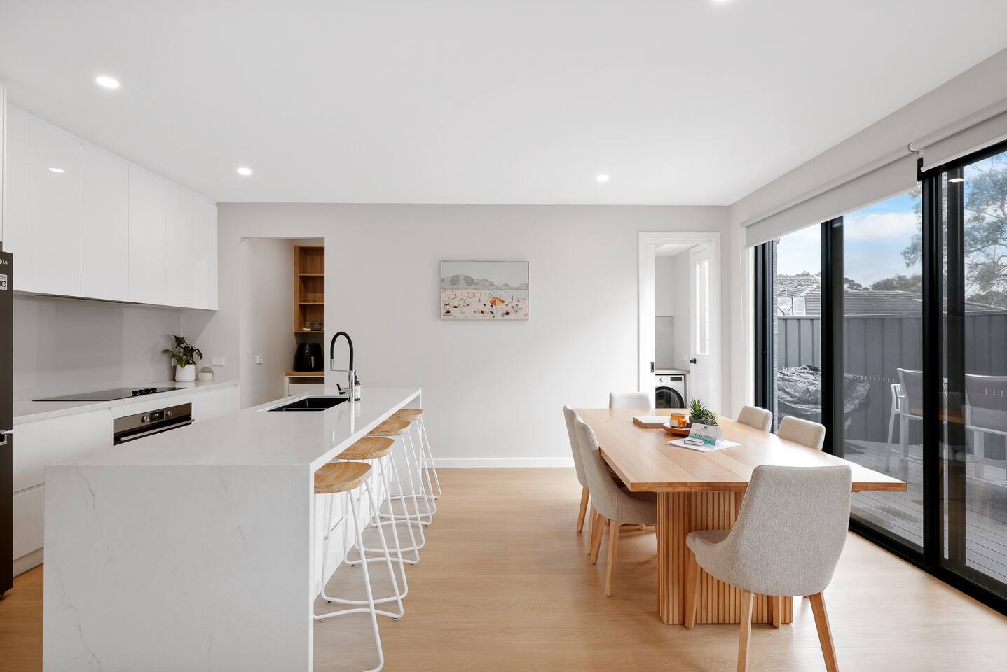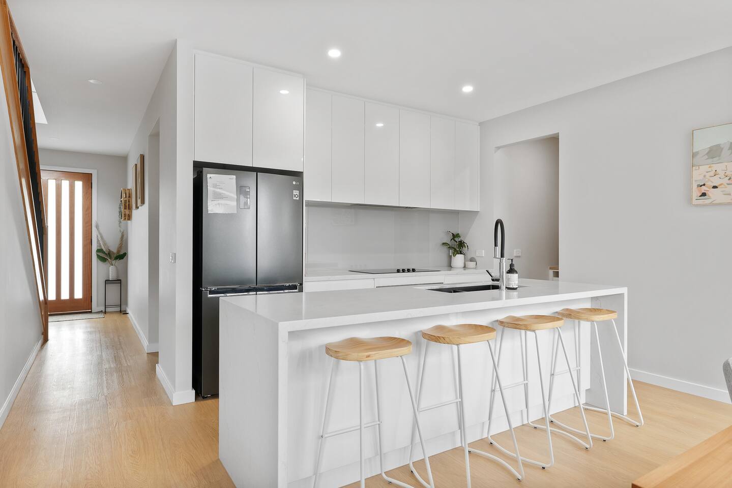 As you step into Church Street Retreat, you're greeted by two spacious living rooms, one on each floor, providing abundant space for relaxation and entertainment. Sink into plush furnishings, surrounded by the tasteful decor, and enjoy your favourite shows on the TVs in both lounges. The attention to detail in design ensures that each space exudes its unique charm, offering a cozy retreat for every member of your party. The heart of this retreat lies in its modern kitchen, fully equipped with top-of-the-line amenities such as an oven, dishwasher, microwave, toaster, and air fryer. The sleek cooktop and Butler's pantry elevate your culinary experience, making meal preparation enjoyable. Church Street Retreat boasts comfortable sleeping arrangements for up to 10 guests, with a walk-in robe adding a touch of convenience to your stay. Luxuriate in the well-appointed bathrooms featuring a hairdryer and a soothing bathtub, providing the perfect retreat after a day of exploration. Stay connected with smart TVs and unlimited Wi-Fi, ensuring you're entertained throughout your stay. The seamless transition from indoor to outdoor living is a hallmark of Church Street Retreat. Step outside to discover a fully fenced backyard with a BBQ, an outside table, and chairs – a perfect setting for al fresco dining under the stars. Convenience is woven into every aspect of your stay, from blackout blinds ensuring a peaceful night's sleep to a washing machine adding practicality to your vacation. Parking is a breeze with available spaces in the driveway and garage, providing security for your vehicles. Immerse yourself in the charm of Cowes and let Church Street Retreat be the canvas for your memorable holiday. Book now and unlock an unparalleled experience where every detail has been carefully curated for your enjoyment. It's not just a vacation; it's an invitation to a world of coastal luxury and tranquillity. The house is in a residential street with surrounding permanent tenants, so we only rent to mature guests who will remain respectful to our neighbours. The house will be used for relaxation-style holidaying; loud parties are prohibited.