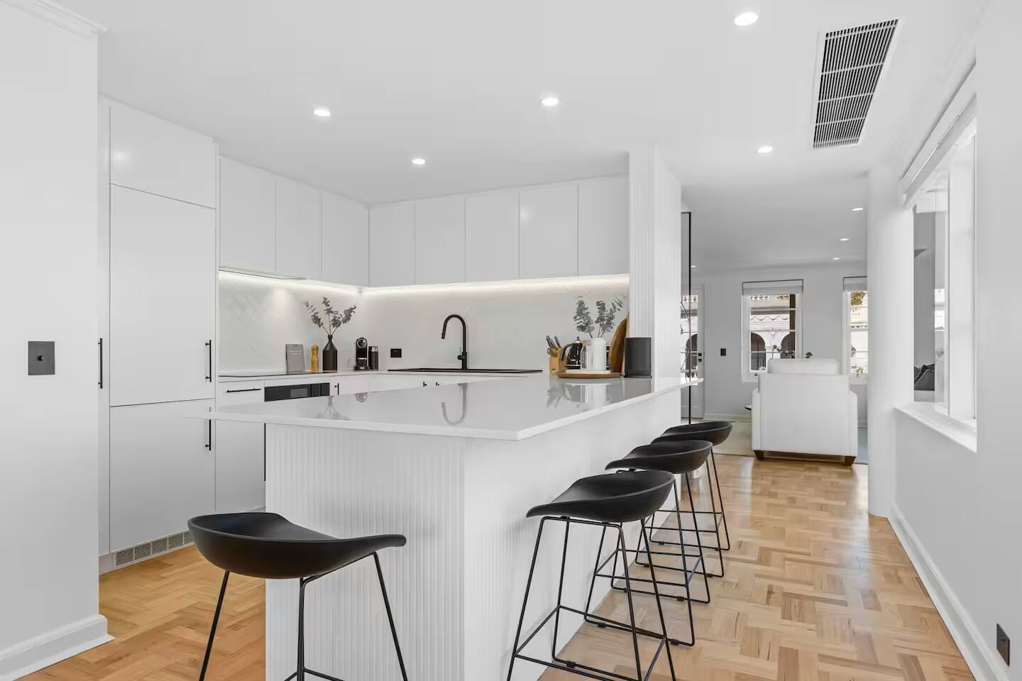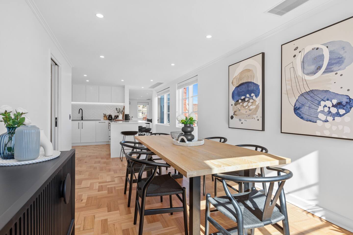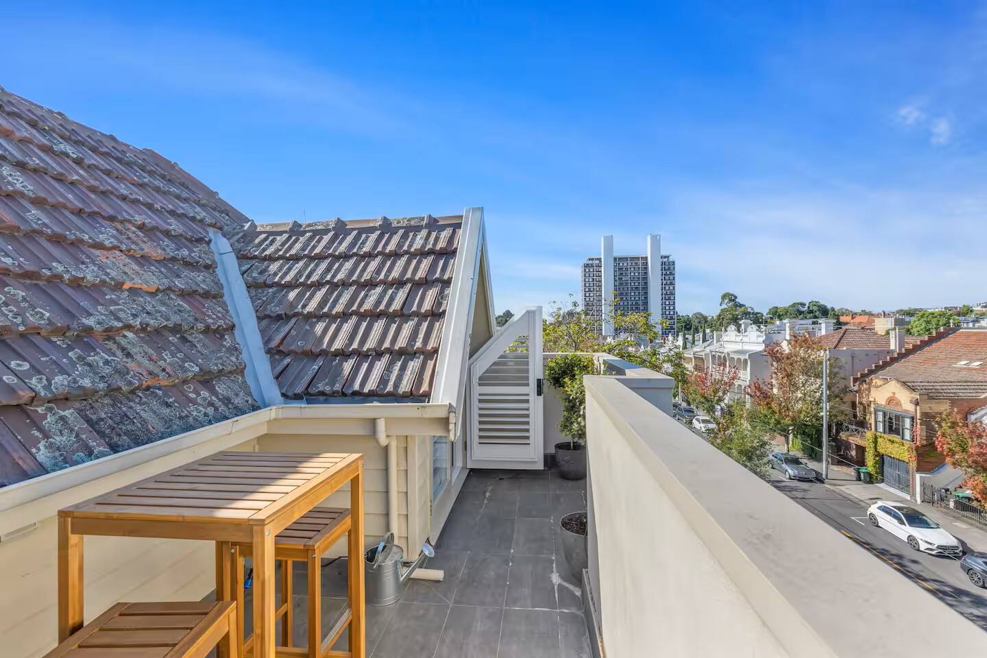 This fantastic home offers: Two-storey home in a beautiful, walkable, and scenic location Easy to get around and close to local amenities Comfortable living room with seating for four guests Smart TV with free-to-air channels, plus access to Foxtel, Netflix, and other streaming services Wi-Fi is included for guest use Sonos sound system for quality audio Dining area seats six people, with additional seating for four at the countertop Fully equipped kitchen with utensils, cutlery, fridge, dishwasher, oven, and Miele induction stovetop Nespresso machine, Delonghi coffee machine, microwave, and toaster Euro-style laundry with washer and dryer Towels, hairdryer, and travel essentials provided Vacuum, iron, ironing board, and dustpan included Blackout blinds for restful sleep A study is ideal for remote work Rooftop terrace and private balcony, both furnished with chairs and a table Garage parking for a small car Additional on-street parking with permit HEATING & COOLING Ducted heating and cooling throughout the property Please note: There is no lift in the building. Stairs are required to access the property. Two locked cupboards are not to be accessed by guests.