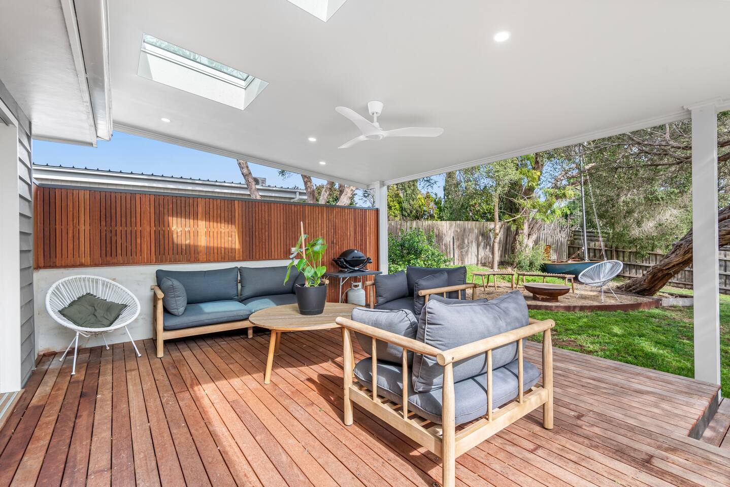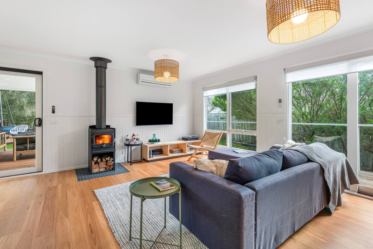 Stay in the lap of family-friendly comfort at Finch's Landing Rye, a stunning 3-bedroom beachside retreat. With character and charm, this home is perfect for a family getaway or a few couples enjoying the coast, blending relaxation with the beauty of the Mornington Peninsula. This light-filled haven offers everything you need for an exciting beach escape. Plush bedding and high-end furniture add a touch of luxury throughout. The stylish kitchen features modern stainless-steel appliances, a coffee machine to kick-start your mornings, and ample cupboard space. Whether you're preparing a meal indoors or enjoying a barbecue outside, the indoor and outdoor dining areas provide inviting spaces to gather. After a day at the beach, retreat to the cozy indoor lounge where you can curl up by the fireplace (BYO wood), dive into a movie marathon on the Smart TV, or enjoy endless entertainment with unlimited Wi-Fi, a DVD player, and a PlayStation 2. The polished floorboards and bi-fold glass doors seamlessly flow to your entertaining deck and private, spacious garden. The fully fenced yard ensures your pets can join in the holiday fun, and the kids will love the backyard with swings, totem tennis, and plenty of space to play. Relax in the hammock or gather around the fire pit under the stars. Located in a quiet residential street, Finch's Landing Rye is just a 10–15-minute walk to Rye’s pristine beaches, charming shops, world-class golf courses, and the famous Peninsula Hot Springs. The house is in a residential street with surrounding permanent tenants, so we only rent to mature guests who will remain respectful to our neighbours. The house will be used for relaxation-style holidaying; loud parties are prohibited. Finch's Landing Rye is your perfect beachside escape, offering a balance of relaxation, adventure, and luxury.