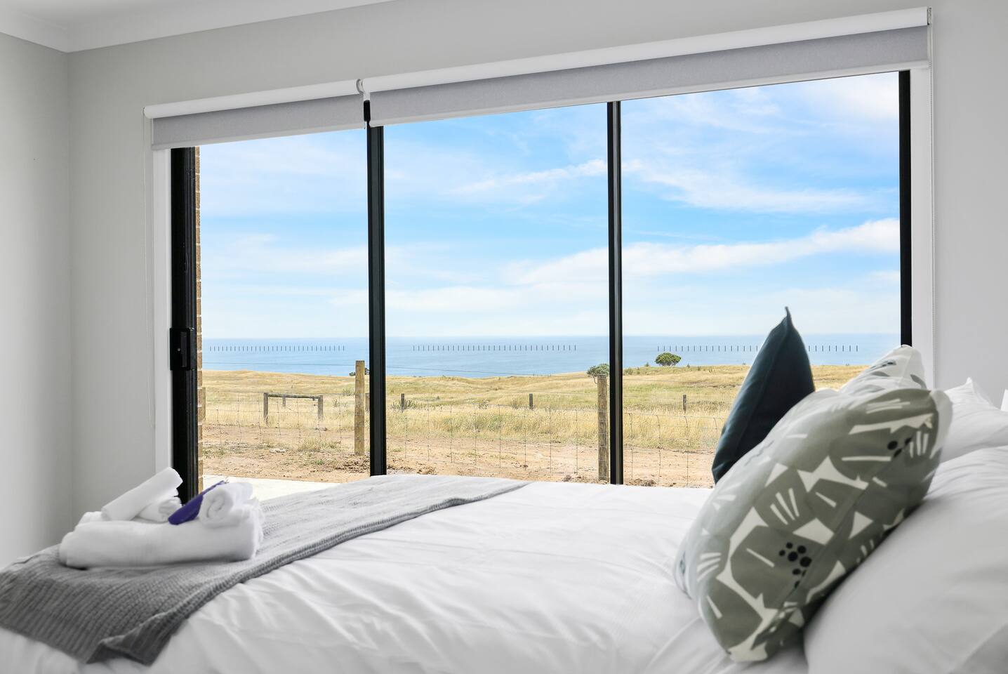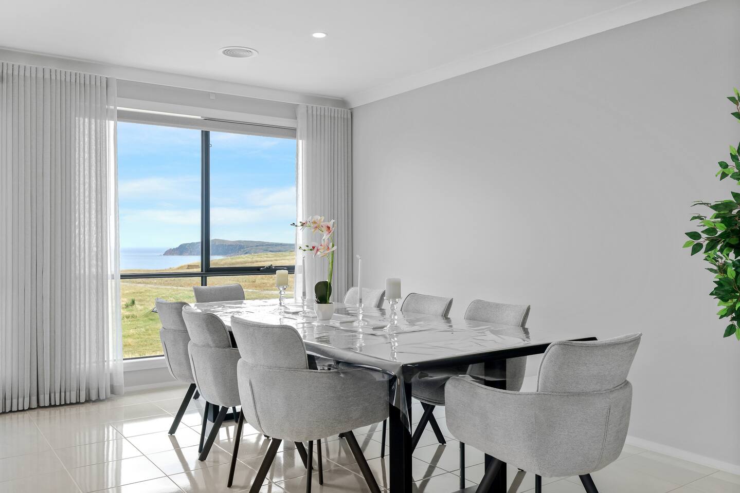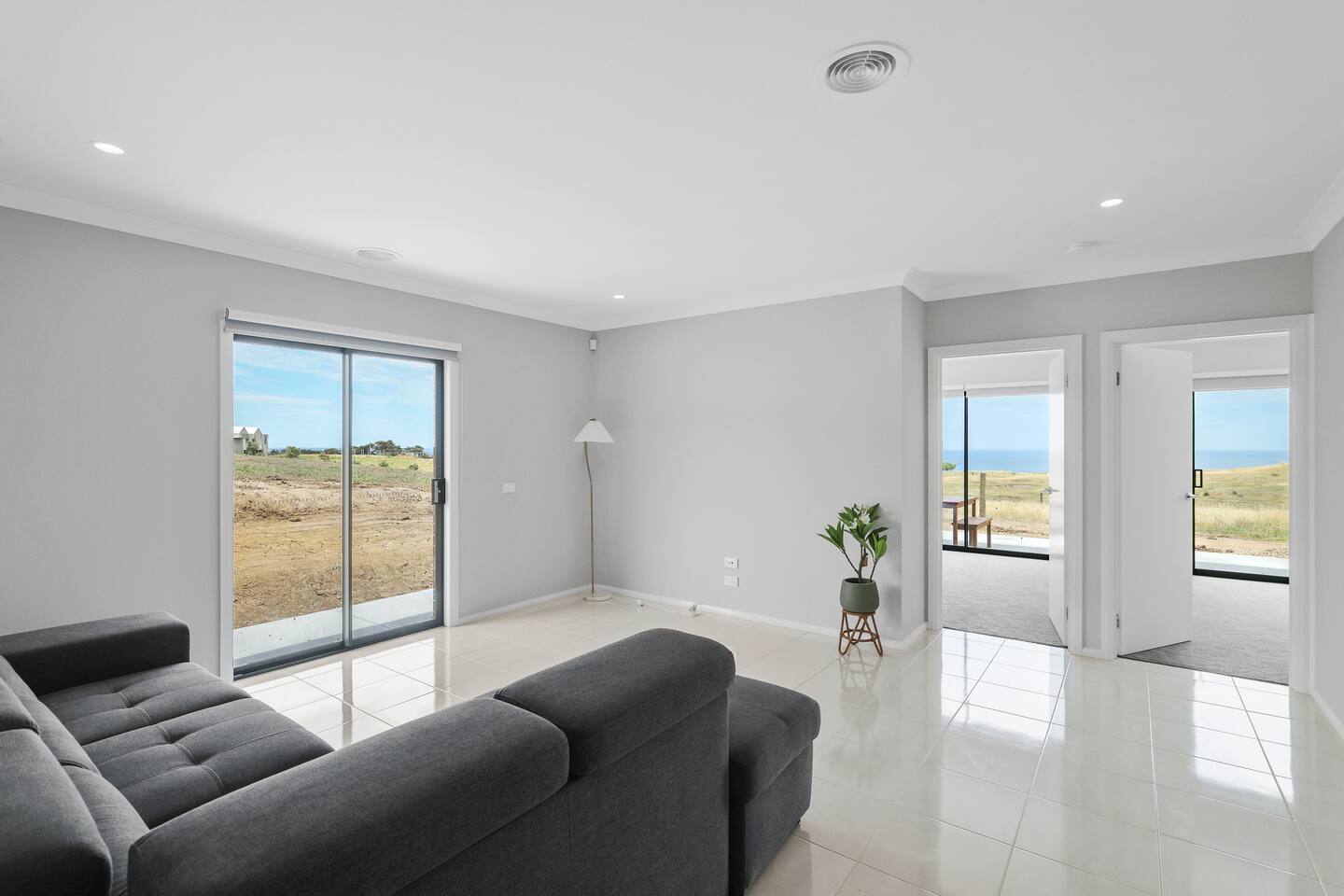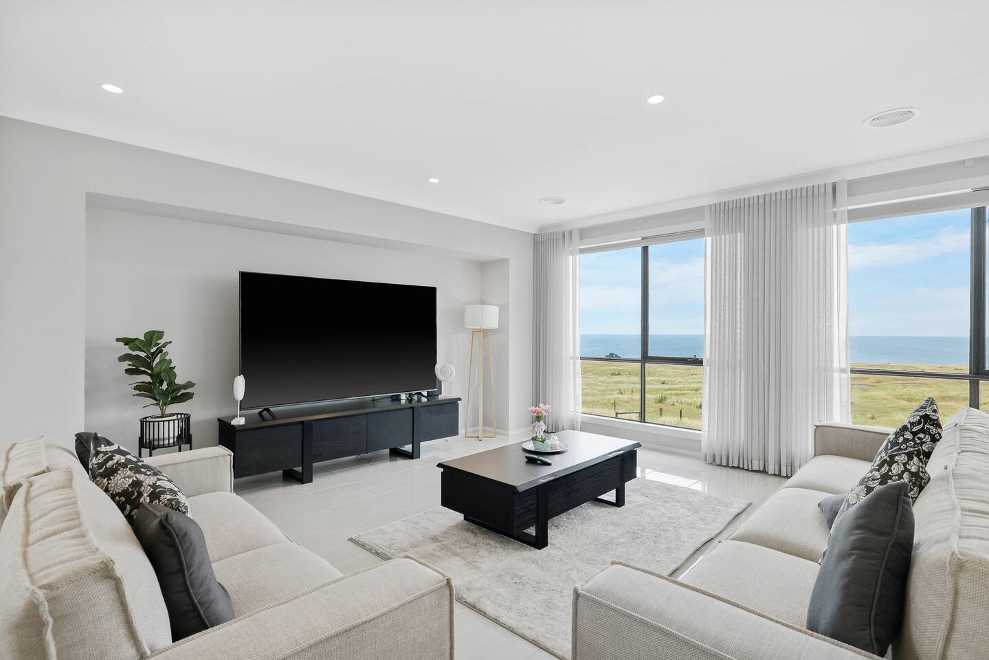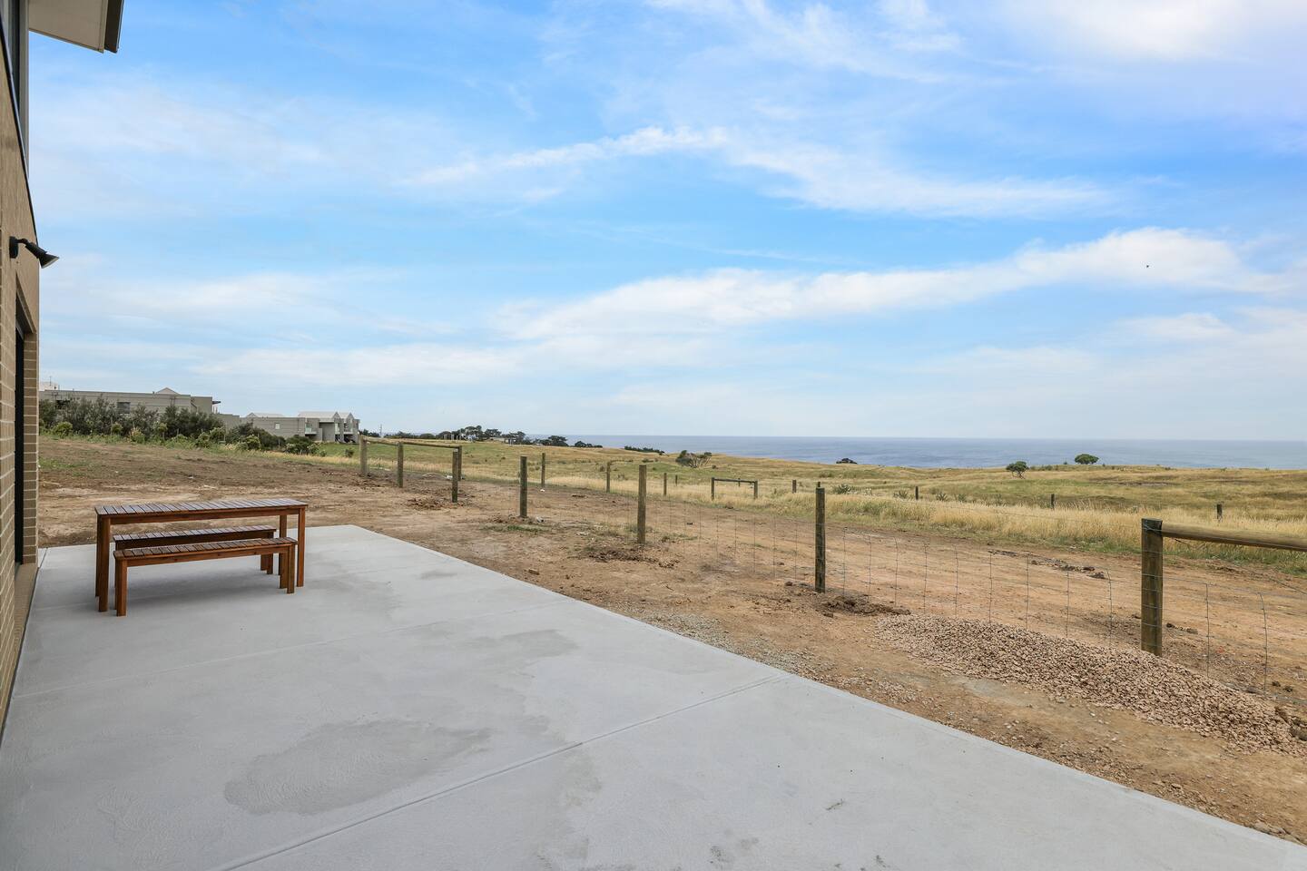 The home features a fully equipped kitchen with an oven, dishwasher, microwave, sandwich press, fridge, and toaster, everything you need to prepare family meals and snacks. Full linens, towels, and blackout blinds are provided for a perfect night’s sleep, so you can focus on what matters: spending quality time together. The spacious living area includes WIFI, a Smart TV for family movie nights, and a washing machine, iron, and ironing board for those staying a little longer. You’ll love the convenience of ample parking and a secure garage, so you can come and go quickly. At Golf Club Seaside Serenity, the beach is at your doorstep, and everything you need for a perfect family holiday is here. Book your stay today and create lasting memories by the sea! Please note that this home is brand new, and while the interior is complete, the gardens and lawn are still in progress. Currently, there is wire fencing at the house to get more sea view, but rest assured, the landscaping will be beautifully finished in the new year. You'll rent the stunning home during this time, with all renovations planned to enhance the property soon.