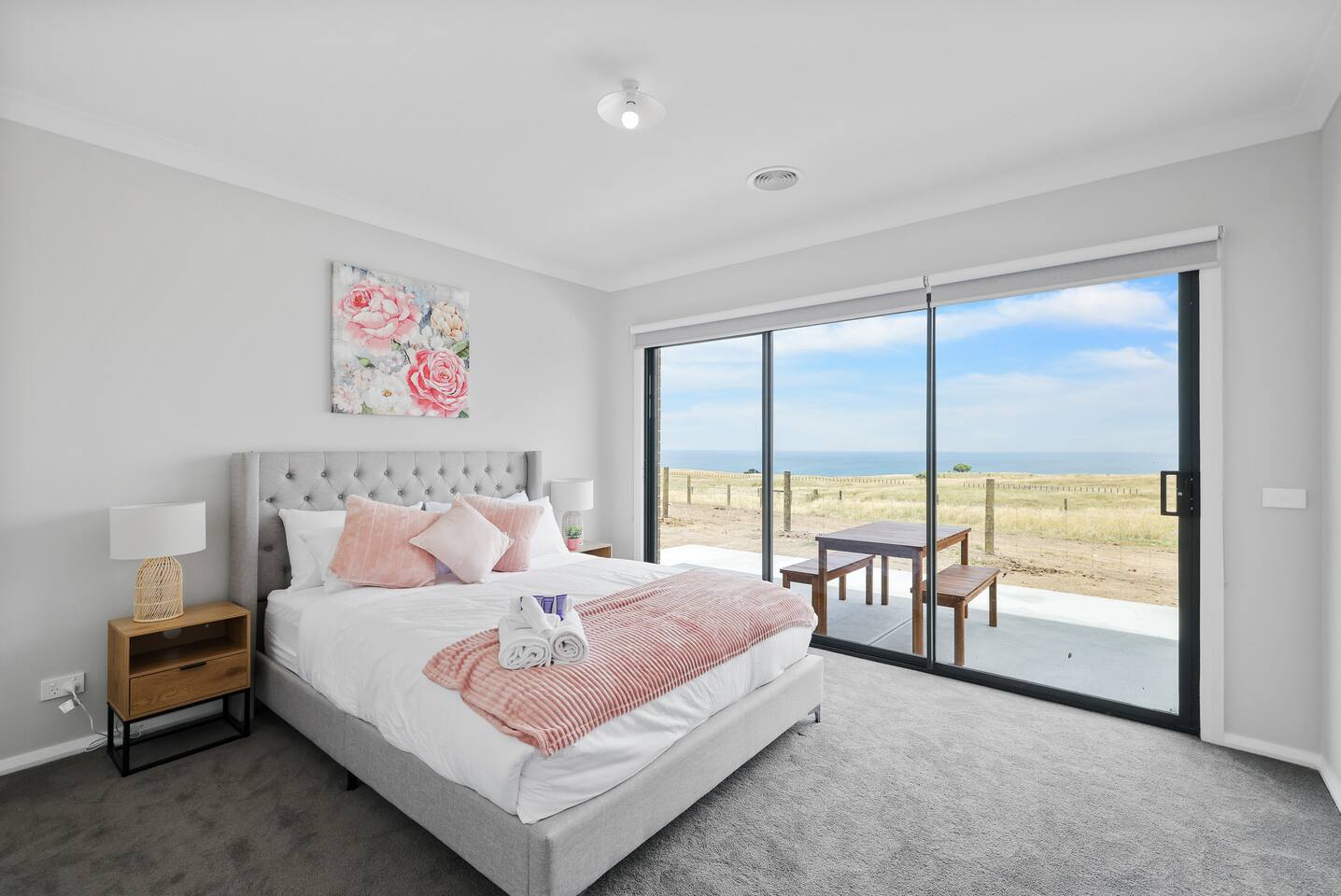 This home sleeps 12 people across 5 bedrooms. Bedroom 1 - 1x King bed (2 guests) Bedroom 2 - 1x Queen bed (2 guests) Bedroom 3 - 1x Queen bed (2 guests) Bedroom 4 - 1x Queen bed (2 guests) Bedroom 5 - 1x Queen bed (2 guests) Living area - A double sofa bed (2 guests) Please note that the sofa bed will have the linen provided but will not be set up. All the linen and towels are provided for you. Lost or damaged linen/towels may incur costs.