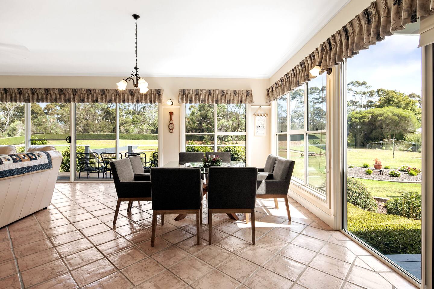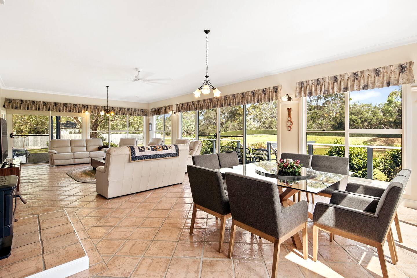 Purposefully designed to accommodate up to 9 guests, this expansive single-level home is ideal for dual families or larger groups. Nestled at the end of an exclusive cul-de-sac on a beautifully maintained 1-acre block, the property offers space, privacy, and all the comforts of home. The home spans an impressive 34 squares and includes a massive 14m x 11m high-clearance garage with direct access to the house—perfect for storing multiple vehicles, boats, or trailers. Additional parking is available in front of the home. Step inside and feel instantly at home in the spacious layout, with multiple living areas designed to allow everyone room to relax. The home features 4 generously sized bedrooms, plus a fold-out sofa bed in one of the living areas to accommodate extra guests. There are two separate living spaces. The main open-plan living and dining area offers serene views of the backyard and dam, with a dining space large enough for the whole group. The second lounge provides additional space to unwind and includes a pool table for your entertainment. The fully equipped kitchen caters to all your cooking needs, and nearby is a large laundry room with a washing machine and ample space for handling laundry during your stay. The home features two well-appointed bathrooms, including an ensuite off the master bedroom. The main bathroom includes a bath, shower, and separate toilet for convenience. Outside, you'll find a fantastic patio area with a BBQ and plenty of seating—ideal for enjoying the outdoors. Children will love the expansive grassy area, which overlooks a tranquil dam. Garage access allows parking for two vehicles, with extra parking available out front. The house is in a residential street with surrounding permanent tenants so we only rent to mature guests that will remain respectful to our neighbours. The house is to be used for relaxation-style holidaying, loud parties are prohibited.