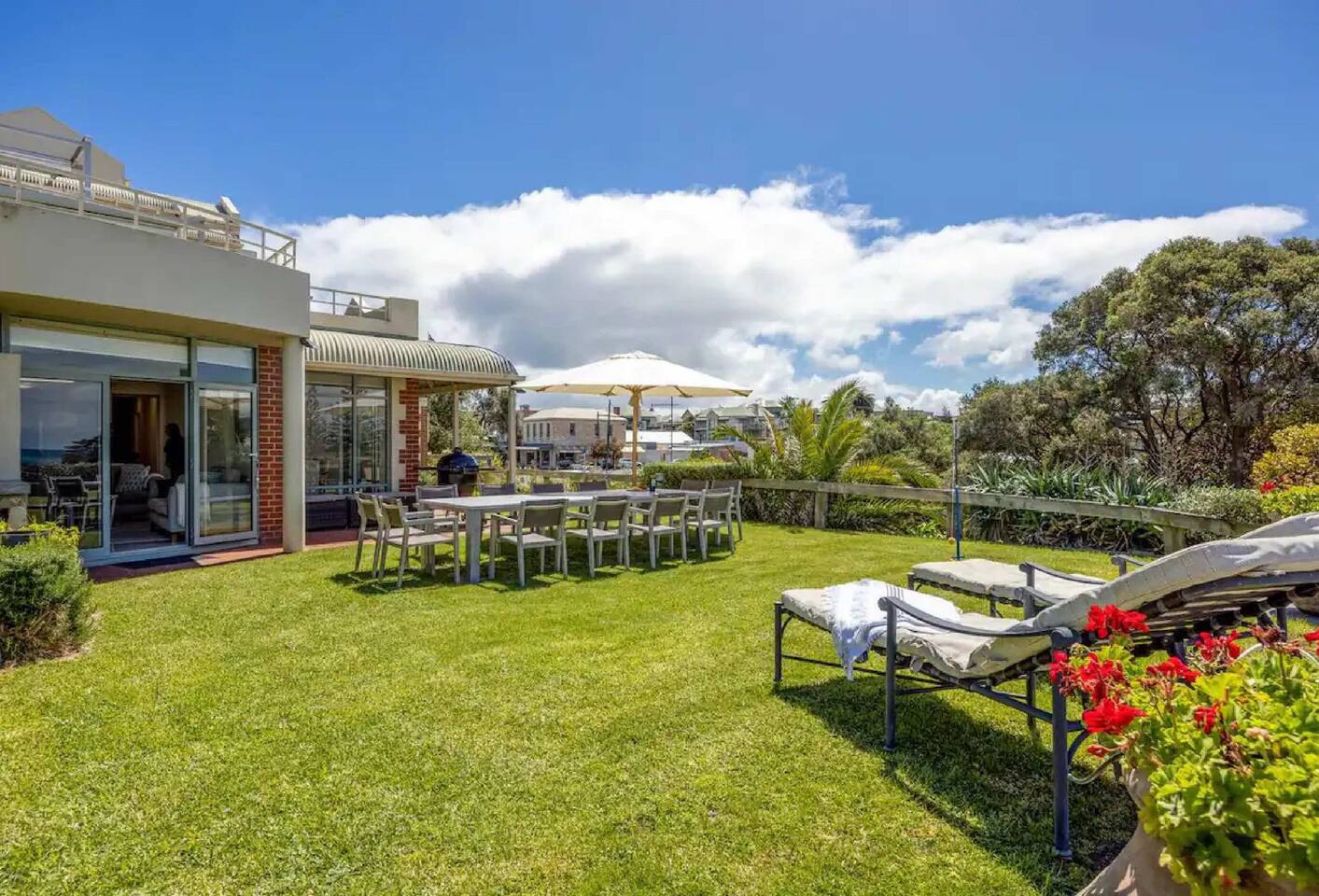 We proudly present Horizon View Retreat, the ideal ground-floor home for your next family and friends getaway. Spoil your eyes with the stunning bay views from the backyard. With three bedrooms, two full bathrooms, and a powder room, the home will impress. This house is perfect for your summer getaway. It is only a 5-min walk to the nearest beach and is surrounded by shops, cafes, and restaurants. With new modern furniture throughout, don't miss the opportunity to stay at Horizon View Retreat.