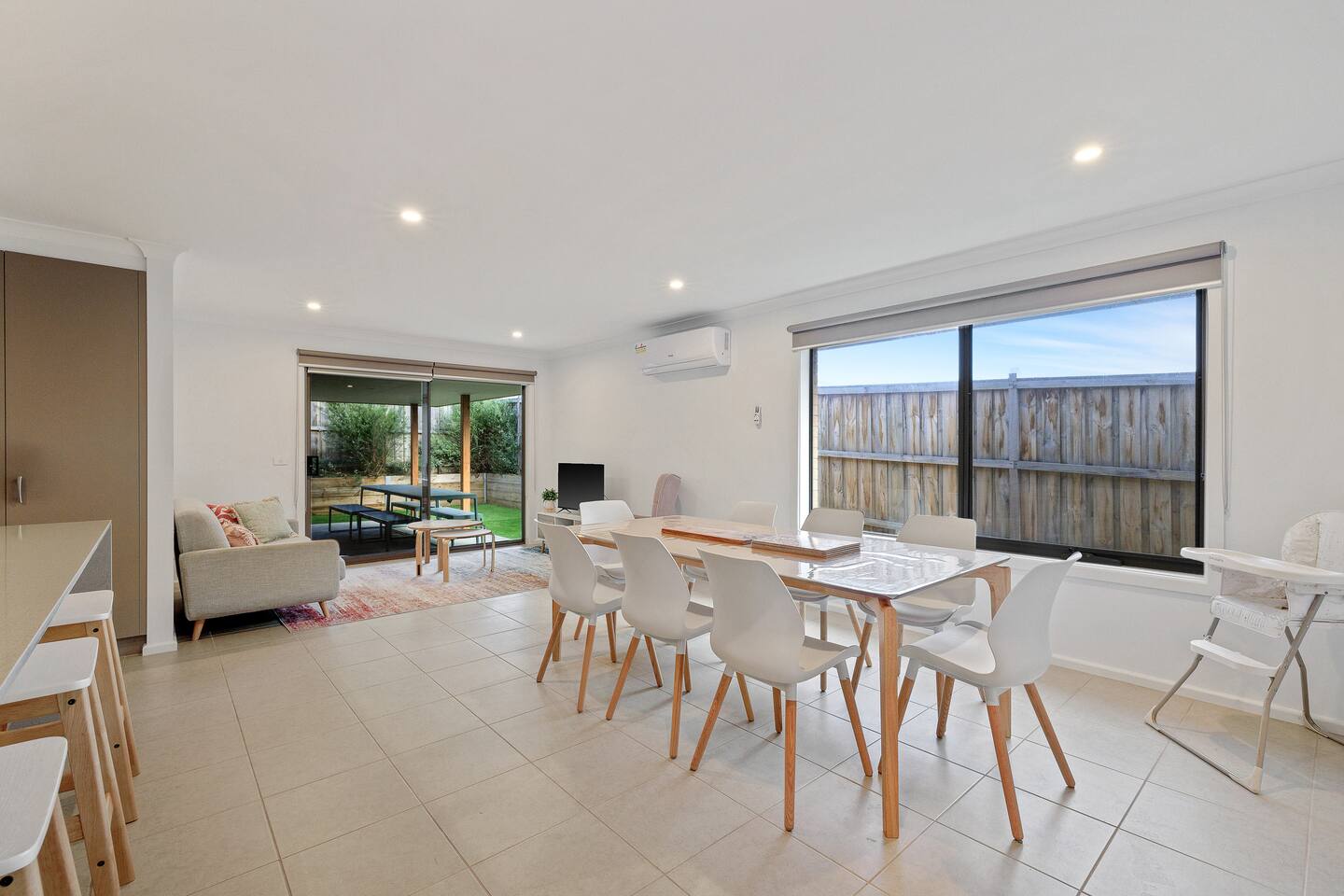 This lovely home offers: Sleeps 8 guests Unlimited WIFI 2 living areas 4 bedrooms and 2 bathrooms Lighted-filled open-plan kitchen/living/dining Dishwasher, microwave, slow cooker and blender Dining table inside and outside Highchair, travel cot, toys and books for kids Washing machine and drying horse Outdoor area with BBQ Parking on-premise HEATING AND COOLING Split system in every bedroom and the living area.