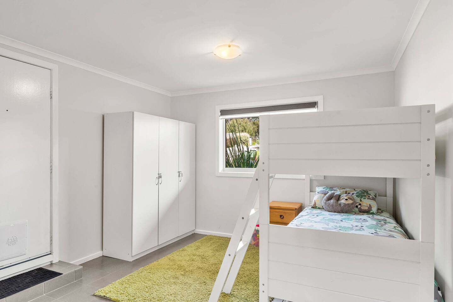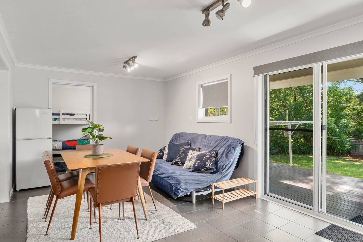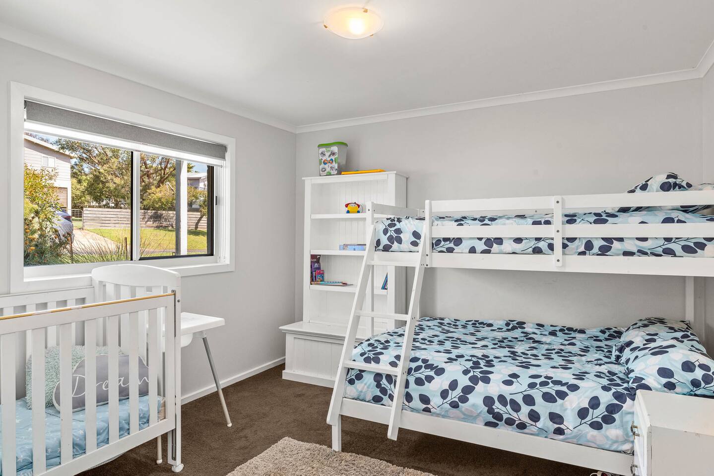 Bedrooms: There are six good-sized bedrooms. The home has 10 beds and sleeps up to 15 guests: Upstairs: Bedroom 1: 1 x Queen bed Bedroom 2: 1 x King bed Bedroom 3: 1 x Queen bed Downstairs: Bedroom 4: 1 x Tri-Bunk (Double bottom & Single top) and 1 x cot Bedroom 5: 1 x Bunk beds (Single bottom & Single top) Bedroom 6: 1 x Bunk beds (Single bottom & Single top) Downstairs living area: Queen size sofa bed Bathrooms: A family bathroom upstairs has a shower over the bath and a separate toilet. Downstairs, there is another shower and a separate toilet in the laundry room with a huge 10kg washing machine. Living areas: The two separate living rooms are equipped with comfy couches and TVs so the kids and adults can relax and unwind in their own spaces. The house has a homely, lived-in feel, so you can enjoy your time away without stressing about leaving marks on fancy new furniture. Kitchen and dining: The fully equipped kitchen makes catering for big groups easy. It features modern appliances, plenty of crockery and cookware, a dishwasher, and an ALDI coffee machine for morning brews. Heating and cooling: This has an efficient split system for heating and cooling upstairs and downstairs. Ceiling fans keep the upstairs bedrooms cool on summer nights, and large windows take advantage of sea breezes. Outdoor area: The two north-facing decks are perfect for BBQs and soaking up the sun, while the south-facing deck offers a cooler space to relax. There’s a huge backyard for the kids and pets with a huge trampoline, space for backyard cricket and an outdoor shower for rinsing off after the beach. LINEN For flexibility and value, we offer a range of linen options: 1. BYO LINEN - All beds (apart from the sofa bed) have pillows and doonas with doona covers. You need to bring fitted sheets, flat sheets, and pillowcases. Also, don’t forget your beach towels, bathroom towels, and tea towels. 2. LINEN SUPPLIED - We can supply pillowcases, fitted and flat sheets for $30 per stay per bed (you’ll still need towels). 3. TOWELS SUPPLIED—We offer a towel set option of $10 per person, including bath towels, beach towels, and one set of 2 tea towels for the house. Please let us know if you need a linen or towel set for your stay.