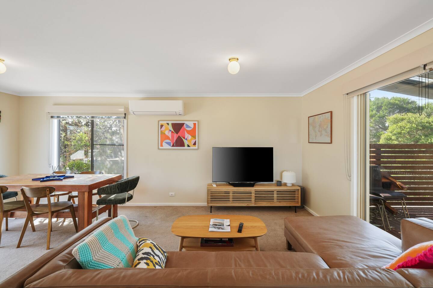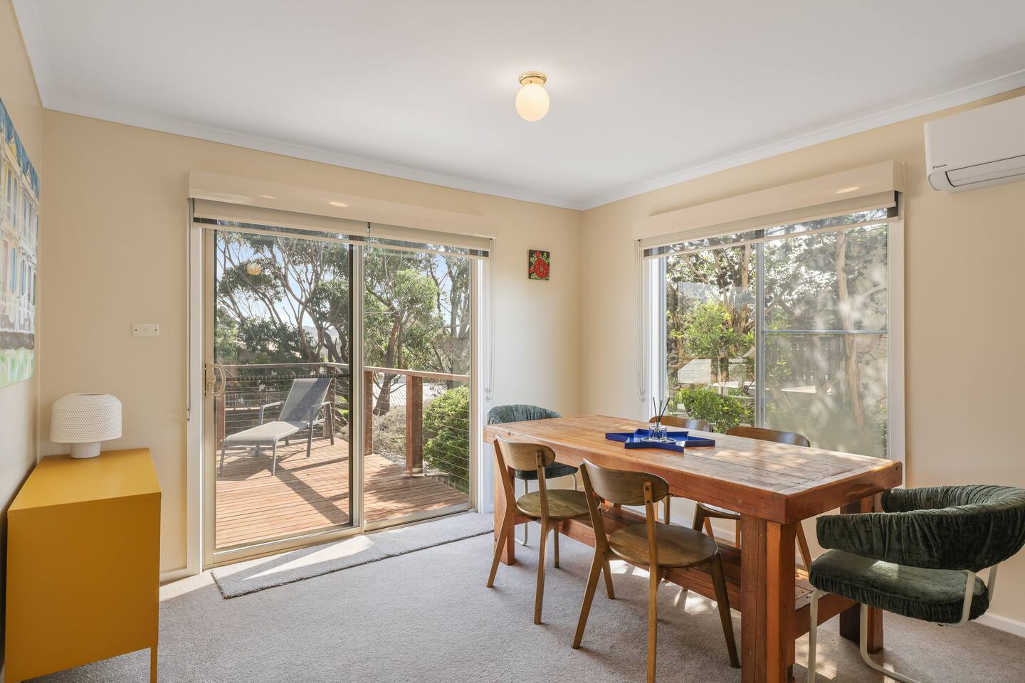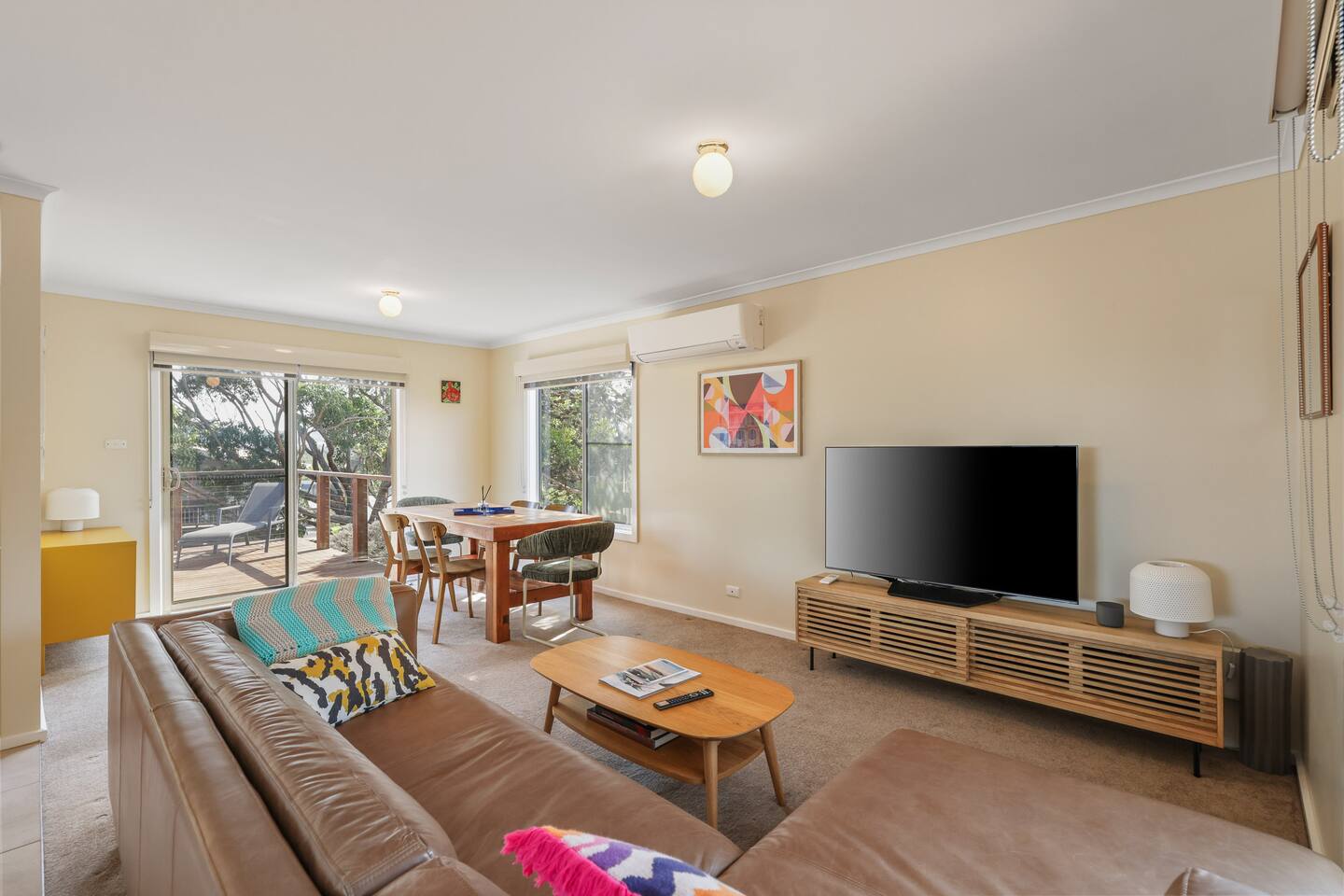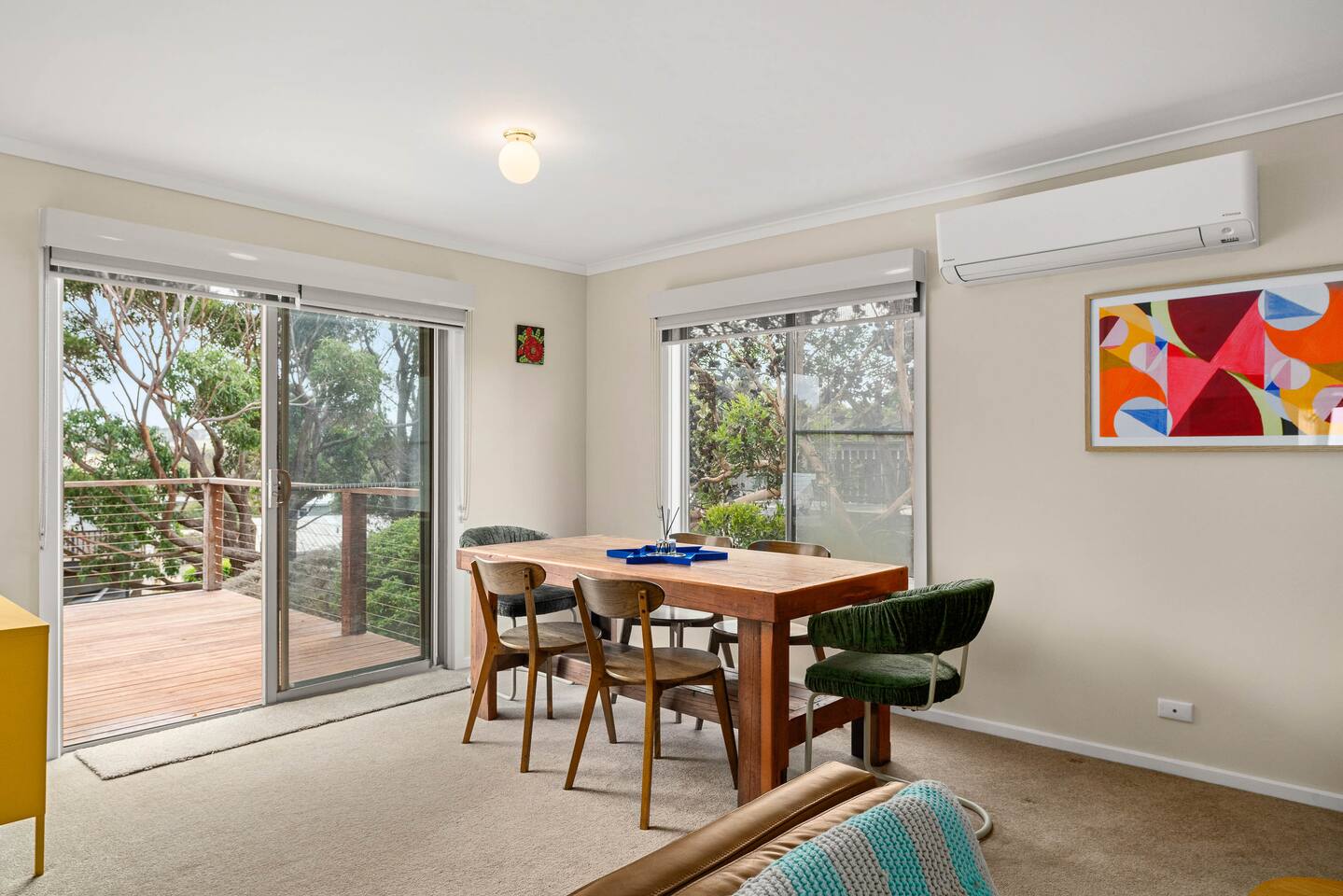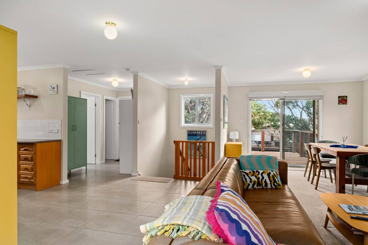 Nestled just five minutes away from the pristine Smiths Beach, Island Treetops offers the perfect family getaway on Phillip Island. This double-storey home comfortably accommodates up to 7 guests, combining traditional charm with all the necessary amenities for a relaxing stay. Situated on a generously sized block, Island Treetops provides plenty of space for relaxation and privacy. The interior is well-organized and welcoming, equipped with everything you need for a stress-free holiday. Additionally, YCW Beach is just a short stroll away, allowing you to enjoy the sand within minutes without needing a car. The thoughtful layout is perfectly suited for families. The ground floor features three cozy bedrooms: the master and a second bedroom for adults, and a third bedroom with bunk beds and a smart TV to keep the kids entertained. The upper floor extends the home’s enchanting atmosphere, with a spacious living area ideal for family gatherings and a dining area that seats everyone comfortably. The house boasts two expansive decks; the south-facing front deck is covered and ideal for enjoying the outdoors in any weather. Island Treetops is set in a quiet residential neighborhood, ensuring a peaceful stay. We are committed to maintaining the area's tranquility and rent only to mature guests who respect the local atmosphere. To maintain this serenity, loud parties are prohibited. Island Treetops checks all the boxes for a tranquil family vacation. With its charming ambiance and proximity to the scenic beaches and attractions of Phillip Island, it is the perfect place to unwind and create lasting memories. Plan your stay at Island Treetops and experience the ultimate in family-friendly relaxation and fun on Phillip Island.
