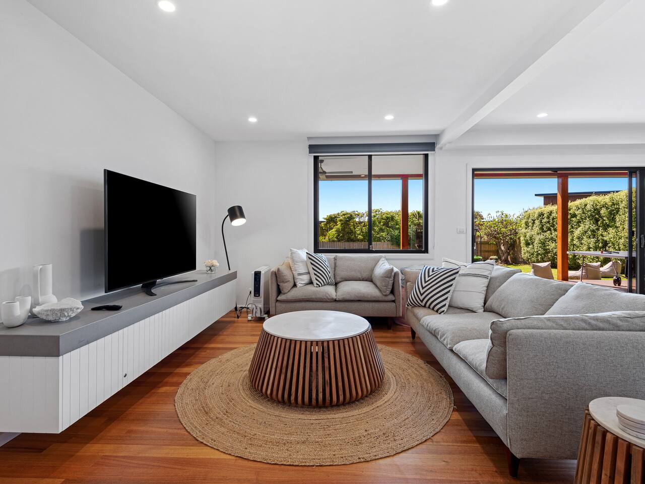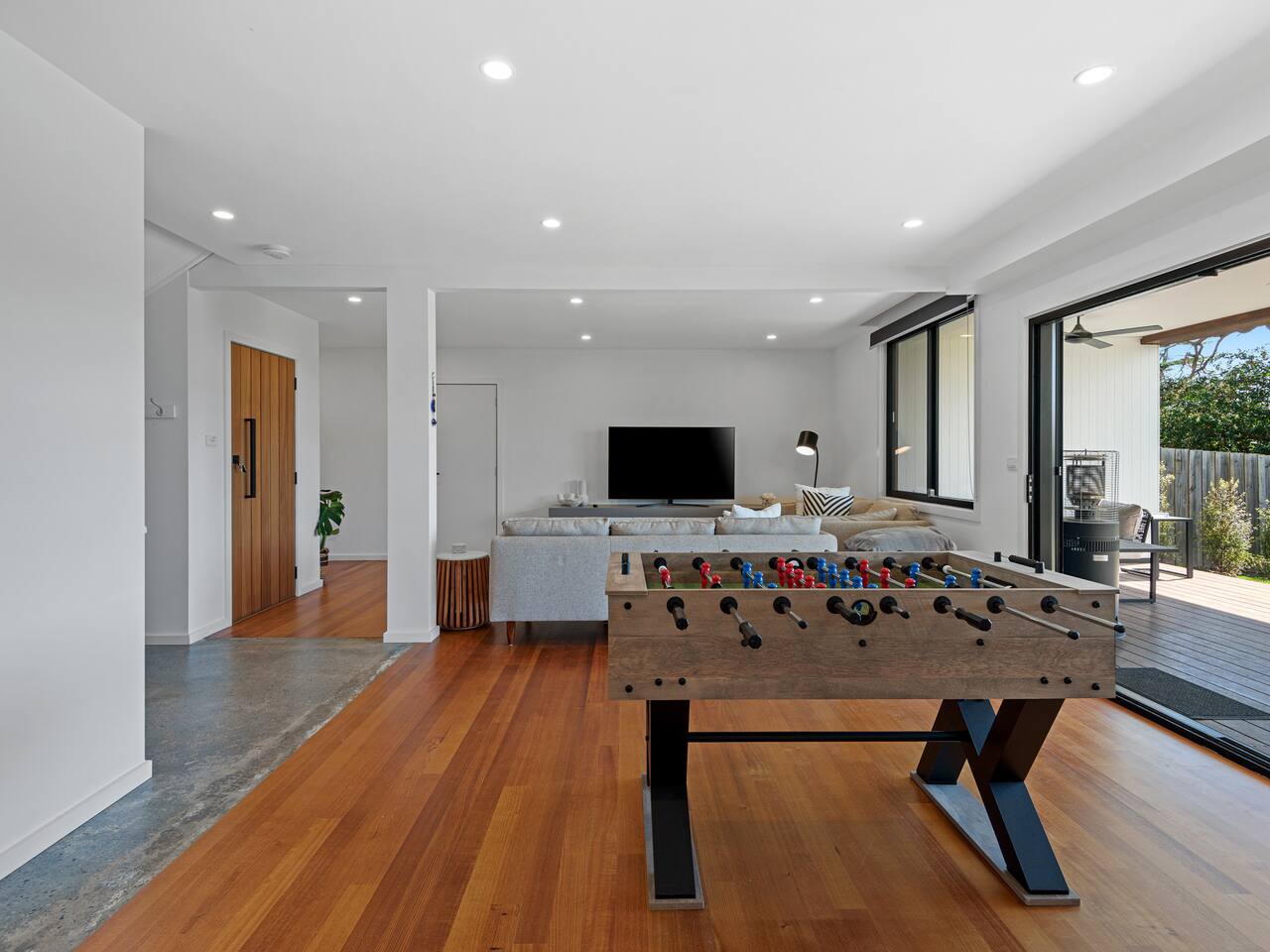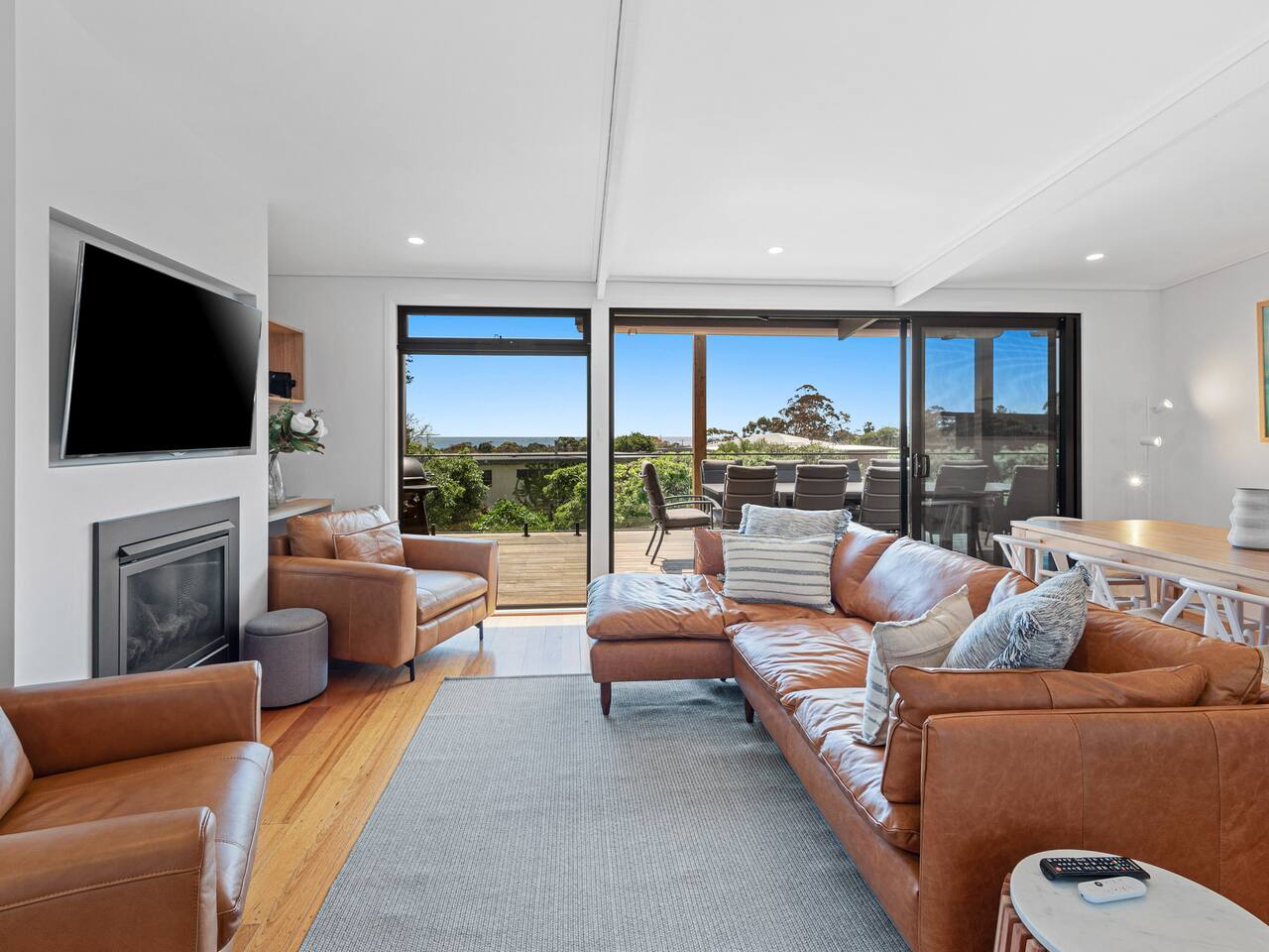 This lovely home offers: 2 story home Pet friendly Fully fenced Fully equipped kitchen - no pantry available Dishwasher and coffee machine (Nespresso pod) - BYO pods Gas log fireplace 2 lovely bathrooms, both with baths Dining table for 8 guests WIFI Study area Highchair 2 digital/smart TVs Games and books Blackout blinks Table tennis Fooseball Outdoor entertainment area with decking and lounge beach chairs Outside couches with gas heating and outdoor fan Balcony with dining for 12 guests and electric awning Euro laundry with washer, dryer and iron Firepit (BYO wood) Parking for boats The garage is not for use HEATING & COOLING Split System in the lounge upstairs Split system in the upstairs bunk room Gas log upstairs lounge Fans in all bedrooms Outdoor fan Downstairs electric heating 3 electric oil heaters for each bedroom Please note, the home has security cameras outside at the front that looks over the driveway We ask all guests to please clean the BBQ after use, or a $50 fee will be charged.