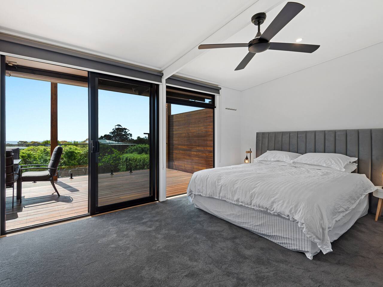 Located a stone's throw from shops, restaurants and beaches, this holiday home will not disappoint. It’s a perfect place to make memories with your family or friends. McCrae Holidays showcases two distinct levels, with superb views of Port Phillip Bay, the McCrae lighthouse, the city skyline and the Sorrento coastline, along with the tree-capped summit of Arthurs Seat. Upon entry to the ground level, you are welcomed by an open-plan living area complete with a study nook and built-in desk, a bathroom and two bedrooms; both with ceiling fans and built-in robes. The living space flows seamlessly onto a sprawling deck, and through to the large, north-facing backyard, which makes for a perfect indoor/outdoor entertaining area. Venture upstairs to enjoy the stunning views from the open-plan living, dining & kitchen space. The kitchen is equipped with a 900mm free-standing SMEG oven & cooktop, as well as a SMEG dishwasher and 20mm Caesarstone benchtops. Upstairs, you will also find a gas log fireplace, a second study nook and access to the deck / outdoor entertaining area. There are two more bedrooms serviced by a separate bathroom and toilet; one of the bedrooms being the master with double built-in robes, a ceiling fan, access to the deck and in turn, the amazing bay view. The other upstairs bedroom features a built-in robe and split system heating and cooling unit. McCrae Holidays will allow you to enjoy the quiet, leafy location, the bay views, the variety of local coffee shops, bakery, restaurants, and the fabulous McCrae beach nearby. If you are looking for a relaxing getaway - look no further! The house is in a residential street with surrounding permanent tenants so we only rent to mature guests that will remain respectful to our neighbours. The house is to be used for relaxation-style holidaying, loud parties are prohibited. A quintessential seaside residence where you can enjoy your holiday and just unwind.