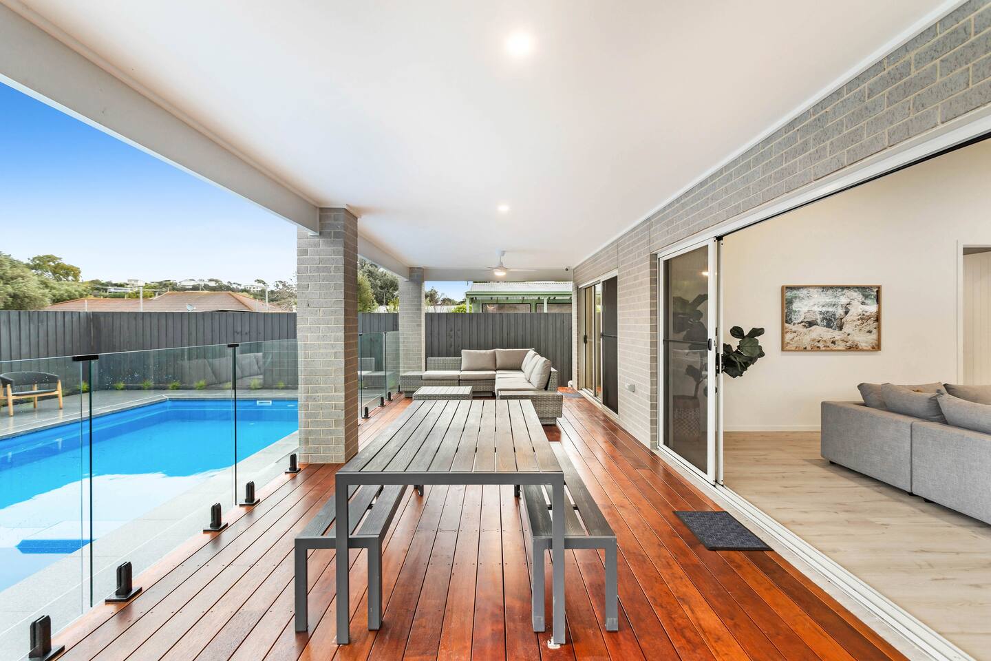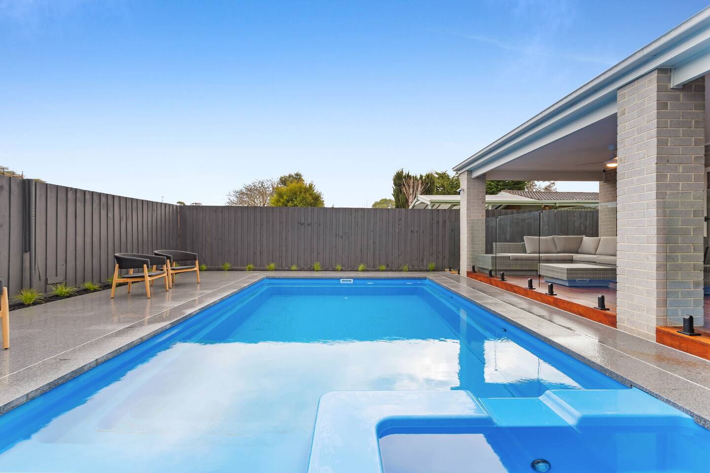 Nestled in the heart of Rye, 'Meadow by the Sea beckons you to embark on an unforgettable holiday retreat. This exquisite home is a symphony of comfort and luxury, where every detail has been meticulously designed to create a haven for relaxation and indulgence. As you step inside, a warm and inviting gas fireplace awaits, promising cozy evenings spent in the company of loved ones, with the soft crackling of logs and the gentle flicker of flames setting the perfect ambience. Gather around the grand dining table, capable of accommodating up to 12 guests, and let your culinary desires come to life. The spacious dining area is a canvas for creating cherished memories over sumptuous meals, whether a festive celebration or an intimate dinner with friends. The bedrooms, adorned with built-in robes, provide a restful sanctuary for every guest, while the main bedroom indulges you with a generous walk-in robe, adding a touch of elegance to your stay. For those who appreciate the art of cooking, the kitchen is a gourmet's dream, equipped with modern conveniences like a microwave and dishwasher. This is no ordinary home; it's a brand-new build, ensuring your stay is imbued with freshness and contemporary design. Outdoors, a world of relaxation and entertainment awaits. Dive into the inviting inground pool, let your cares melt away in the spa, or bask in the sun's warm embrace by the poolside. An outdoor ceiling fan keeps you cool as you savour alfresco delights cooked on the plumbed-in Webber BBQ. Indulge in endless entertainment options with a large built-in TV and not one but two spacious loungerooms, both boasting smart TVs for your viewing pleasure. There's a trampoline and a table tennis for the active souls in the garage, ensuring every moment is filled with excitement. Please note that the basketball area is not for use and must not be used due to council regulations. Meadow by the Sea isn't just a holiday home; it's your gateway to a world of luxury and relaxation. Reserve your stay now and craft memories that will linger in your heart for years. Your dream holiday begins here. The house is in a residential street with surrounding permanent tenants, so we only rent to mature guests who will remain respectful to our neighbours. The house will be used for relaxation-style holidaying; loud parties are prohibited.