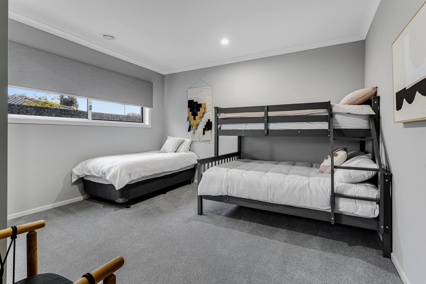 It is a quintessential seaside home where you can enjoy your holiday and unwind. This home sleeps 14 guests across five bedrooms. Bedroom 1 – 1x King bed (sleeps 2) with ensuite Bedroom 2 – 1x Queen bed (sleeps 2) with ensuite Bedroom 3 – 1x Queen bed (sleeps 2) Bedroom 4 – 1x Tri bunk (double/single) and single bed (sleeps 4) Bedroom 5 – 1x Tri bunk (double/single) and single bed (sleeps 4) Please BYO linen for the porta cot All linen and towels are provided for your stay. Lost or damaged hired linen/towels may incur costs. We ask all guests to please clean the BBQ after use, or a $50 fee will be charged.