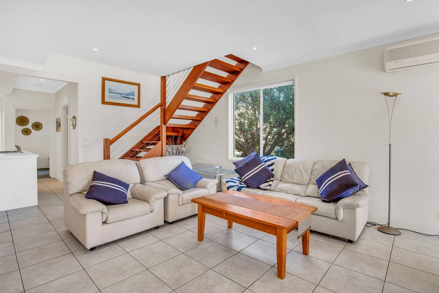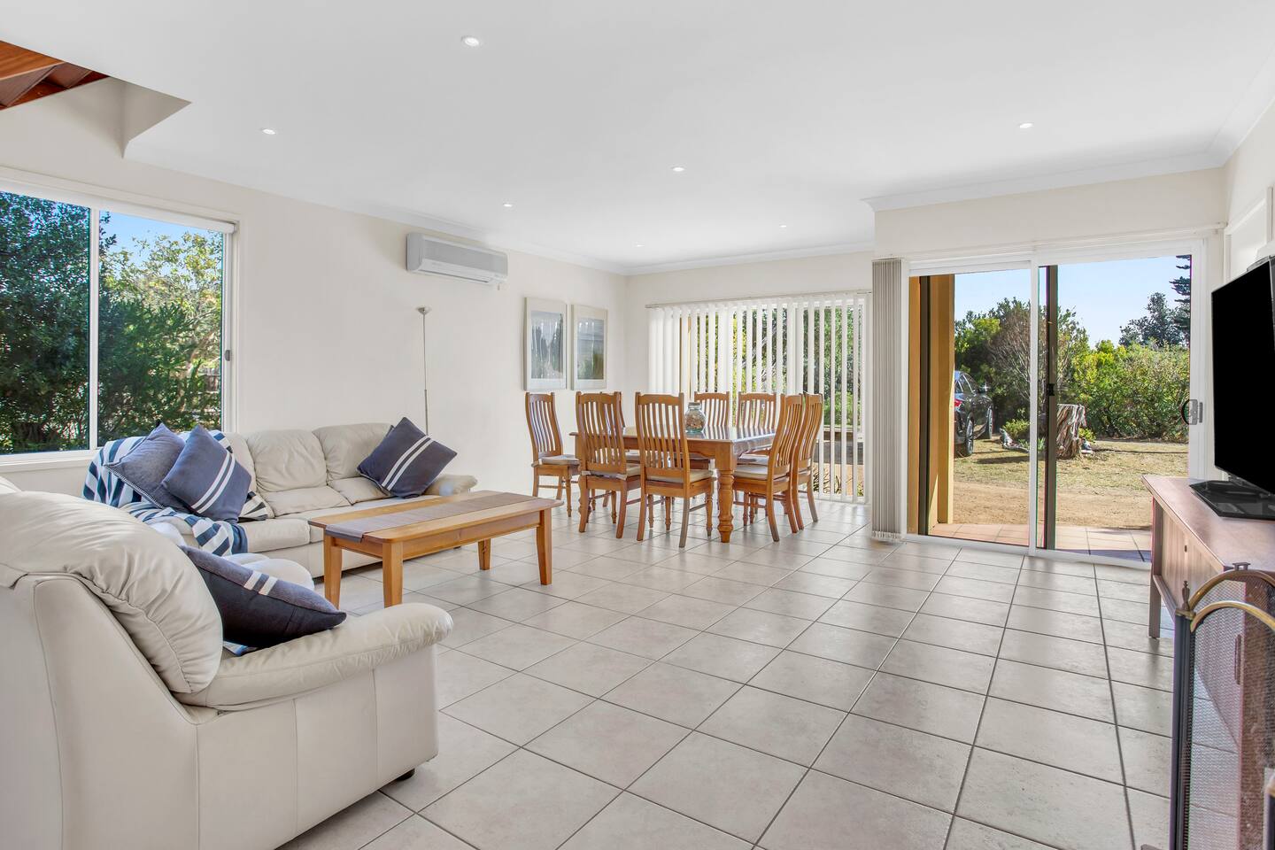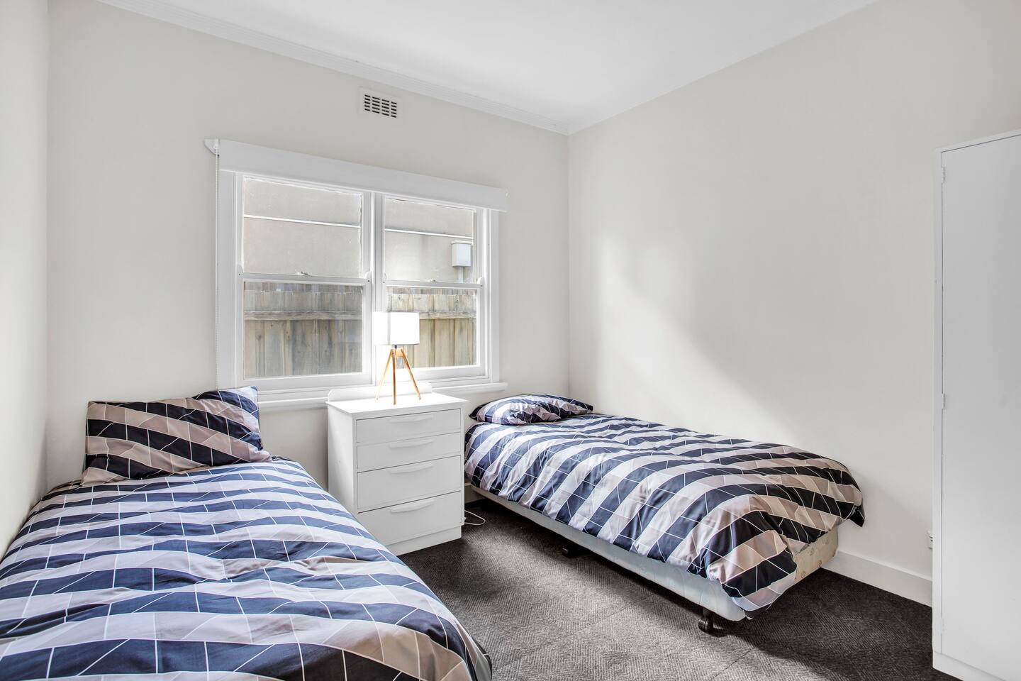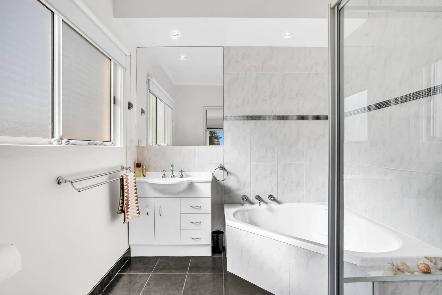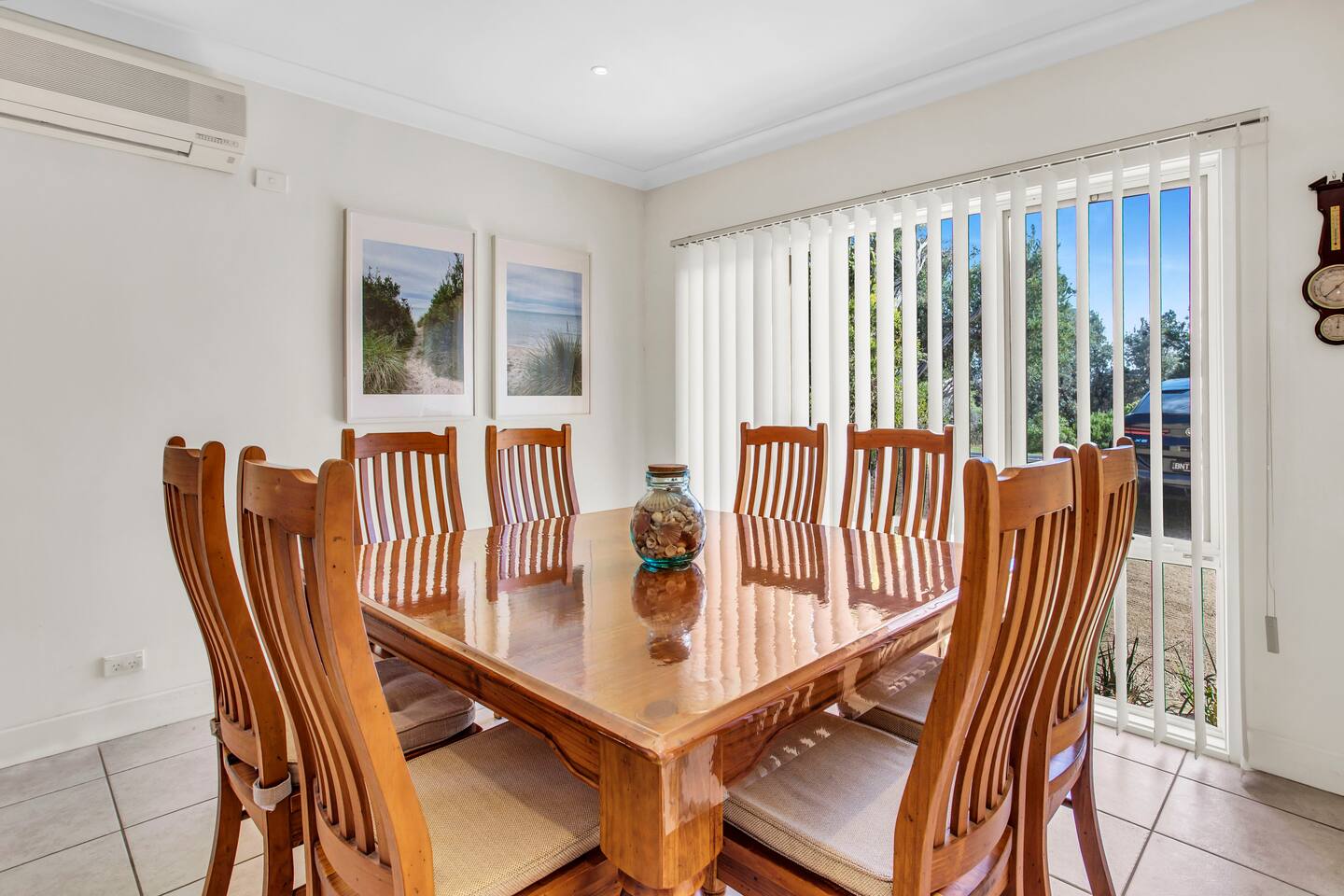 Welcome to your perfect coastal getaway 'Moonya', where the sound of the waves and the salty breeze will rejuvenate your senses. This property is the epitome of relaxation and enjoyment, with all the amenities you need to make your stay unforgettable. Let's start with the outdoors, where you can bask in the sunshine or enjoy the cool ocean breeze. The fully fenced yard is perfect for kids. The outdoor table and chairs are perfect for al fresco dining, while the board games will keep everyone entertained. After a long day at the beach, rinse off in the outdoor shower, even though it may be cold, it's sure to give you a refreshing experience. Inside, you'll find a modern and stylish décor with all the features you need for a comfortable stay. The downstairs area boasts a large dining table for eight guests, a smart TV, and a fully equipped kitchen with a dishwasher and Aldi coffee machine, so you can enjoy your favourite coffee while on vacation. Upstairs, you'll find a second lounge room with a TV, a kitchenette with a bar fridge, and a balcony with water views, the perfect spot to unwind and soak in the coastal scenery. Don't worry about doing laundry, as the washing machine is available in a separate flat. Speaking of the separate flat, it's a self-contained guest house with a lounge room, a table for four, and a fully equipped kitchen with a microwave, oven, and dishwasher, making it perfect for couples or a family looking for a little more privacy. The separate flat also has its own washing machine and vacuum cleaner, making it easy to keep tidy. With five bedrooms in total, the property comfortably sleeps ten guests. The main house features three bedrooms, including a queen bedroom with BIR, a double bedroom with TV and WIR, and a bedroom with two single beds. The separate flat includes a bedroom with a double bed and a bedroom with two single beds. Whether you're looking for a family holiday or a getaway with friends, this property has it all. Book now and experience the ultimate coastal vacation! The house is in a residential street with surrounding permanent tenants so we only rent to mature guests that will remain respectful to our neighbours. The house is to be used for relaxation-style holidaying, loud parties are prohibited.