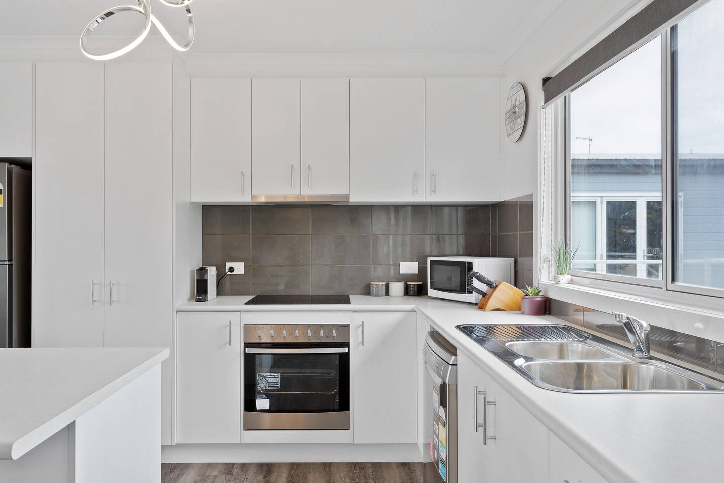 Located a stone's throw to the beach, this beautiful holiday home will not disappoint. Bring your children, family, and friends along. The upper level comprises the well-appointed kitchen that offers a cooktop, oven, and dishwasher. Also on the upper level is the living/dining room and the master bedroom with a spacious walk-in robe and ensuite. The lower level offers 2 further bedrooms, a family bathroom, and another living area with a TV. The house is in a residential street with surrounding permanent tenants so we only rent to mature guests that will remain respectful to our neighbours. The house is to be used for relaxation-style holidaying, loud parties are prohibited.