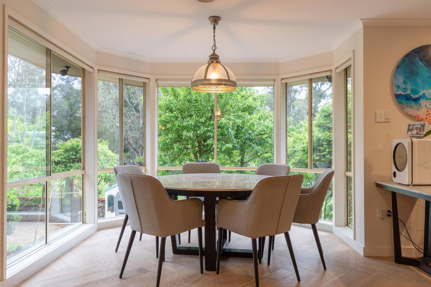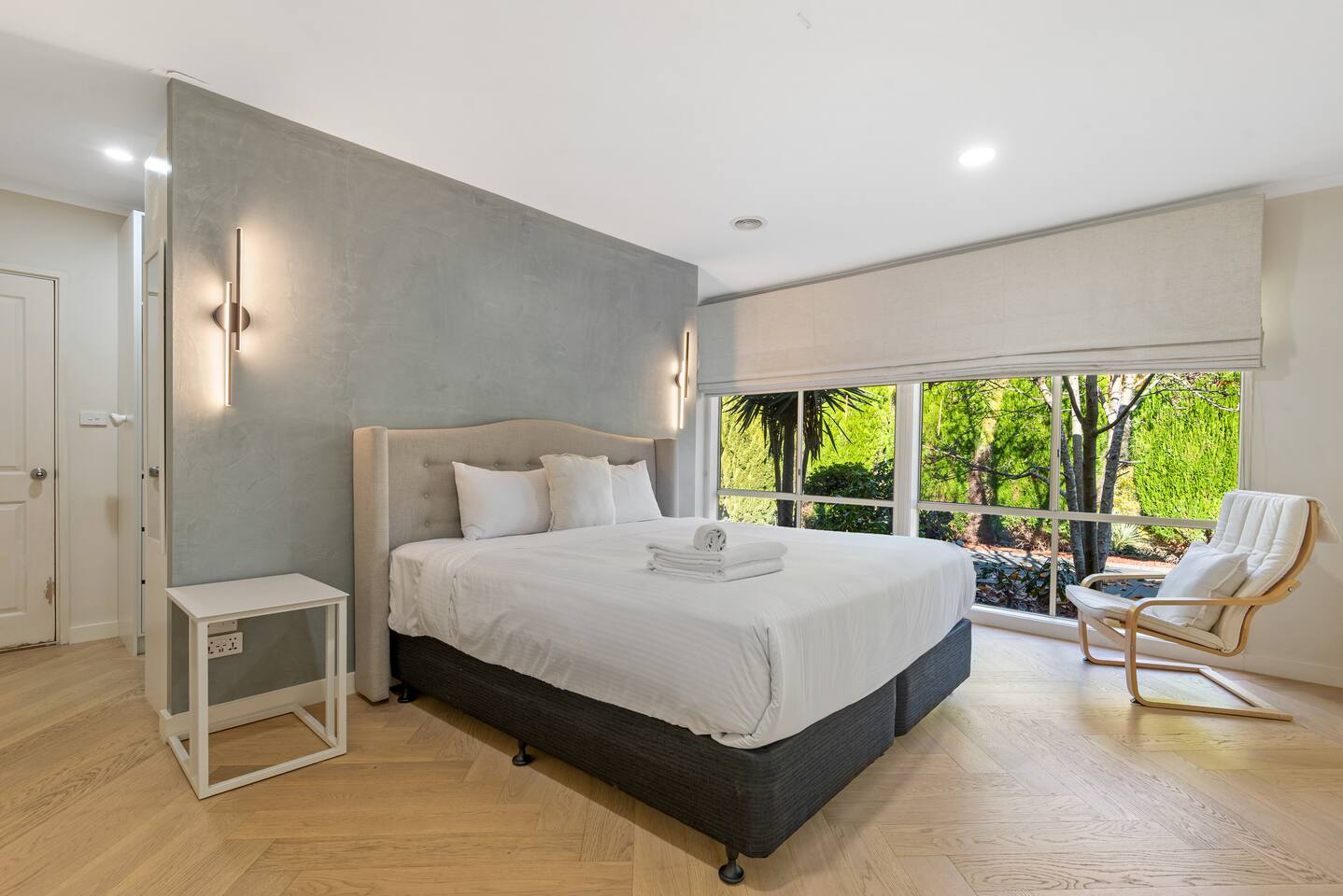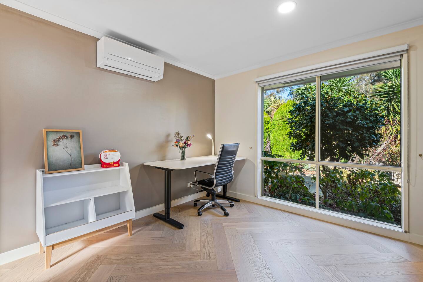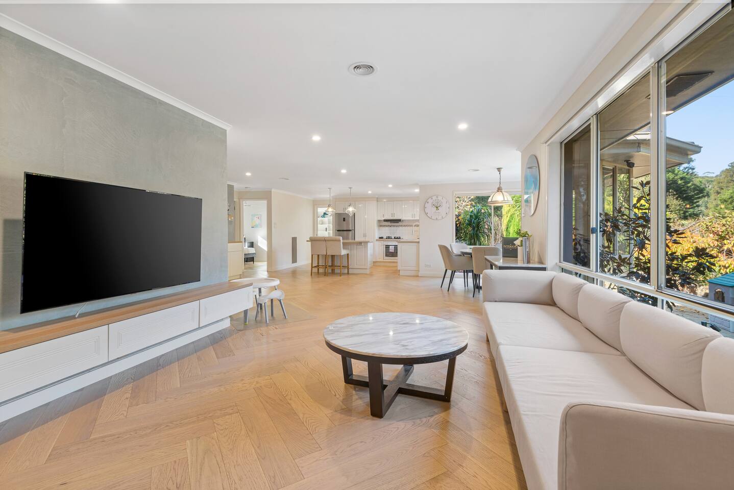 Park Oasis offers both tranquillity and convenience, with everything you need for a comfortable and enjoyable stay right at your doorstep. Our favourite features of the home include: Mullum Mullum Creek pocket framed by tiered native gardens Acre plus land with high-side views Indoor table with 6 chairs Second sitting room Smart TV Netflix Projector screens Washing machine and dryer Dishwasher Oven Microwave Fridge Kettle and toaster Master king bedroom with walk-in robe All other 3 bedrooms with built-in robes Kids' chairs and tables Books for kids Separate study with desk and chair Exercise equipment with bench press machine CCTV (external) for your safety Ask if you need a portacot or high chair Clotheslines Car toys for kids Quiet and peaceful with lovely views Outdoor dining for 8 Outdoor electronic blinds Large gardens for kids to enjoy and kick a footy or soccer ball Swings for kids Kids' small cubby house Climbing items and swings for kids Outdoor decking Small firepit Vegetable garden Kangaroos and deer can be seen at night from the home HEATING & COOLING Split System in the loungeroom, master bedroom and study room Central gas heating Fans in other bedrooms