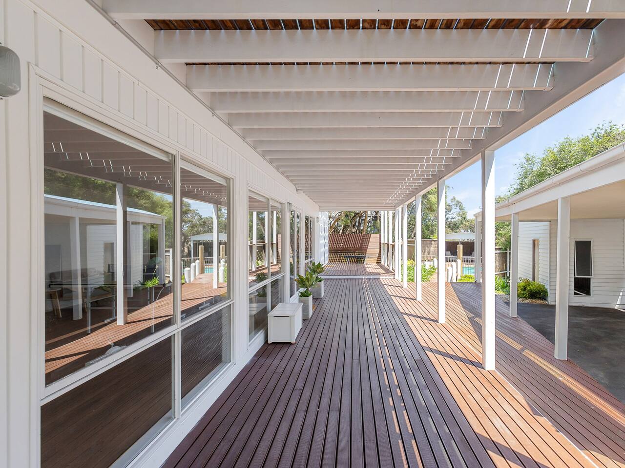 This home sleeps 18 people across 7 bedrooms. MAIN HOUSE Bedroom 1: 1x Queen Bed (2 guests) - Upstairs Bedroom 2: 1x Queen Bed (2 guests) - Upstairs Bedroom 3: 1x Queen Bed (2 guests) - Downstairs Bedroom 4: 2x Single Bunk Bed (4 guests) - Downstairs Bedroom 5: 2x Single Bunk Bed (4 guests) - Downstairs SEPARATE GUEST HOUSE Bedroom 6: 1x Queen Bed (2 guests) Bedroom 7: 1x Queen Bed (2 guests) With multiple living zones, there is plenty of space for guests to spread out and relax. A quintessential seaside residence where you can enjoy your holiday and just unwind. Linen will be provided for your stay. however lost or damaged linen/towels may incur costs. What to bring: beach towels, bath towels, tea towels and hand towels. Guests have the choice of hiring the following: Towel Set Hire - Guests can hire a towel set for $10 per person which includes 1 bath towel and 2 tea towels (for only the first ordered towel set). We ask all guests to please clean the BBQ after use, or a $50 fee will be charged. Delivery Fee - If any items are hired, there will be a one-off delivery / set-up fee of $40. If the stay is longer than 7 days, ask management for any additional pricing. For towel hire, advise Ready Set Stay with 48 hours notice as last minute requests may not be possible. Lost or damaged hired linen / towels may incur costs. Ready Set Stay will assume no towel sets are requested for hire unless advised. We ask all guests to please clean the BBQ after use, or a $50 fee will be charged. This is the perfect Rye holiday house for families or groups of friends and within walking distance to the beach. Not suitable for parties. Come and relax at Rye Baby Main House and Guest House for an unforgettable stay.