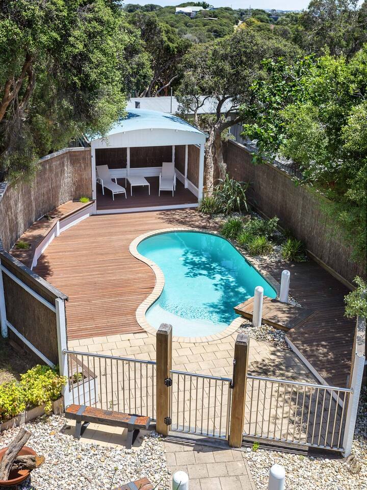Welcome to Rye Baby, a newly renovated coastal dream home. This is your true beachside holiday on the stunning Mornington Peninsula, 600m from the beach, 5 mins drive to shops and restaurants, access to the entire house and guest house. Great for families or a group of friends with WIFI 7 bedroom, 5 bathroom home (inc the guest house) abounds in spaces large enough for a large group also suitable some quiet time. Multiple living areas, sleeps 18 guests with a well equipped landscaped pool.