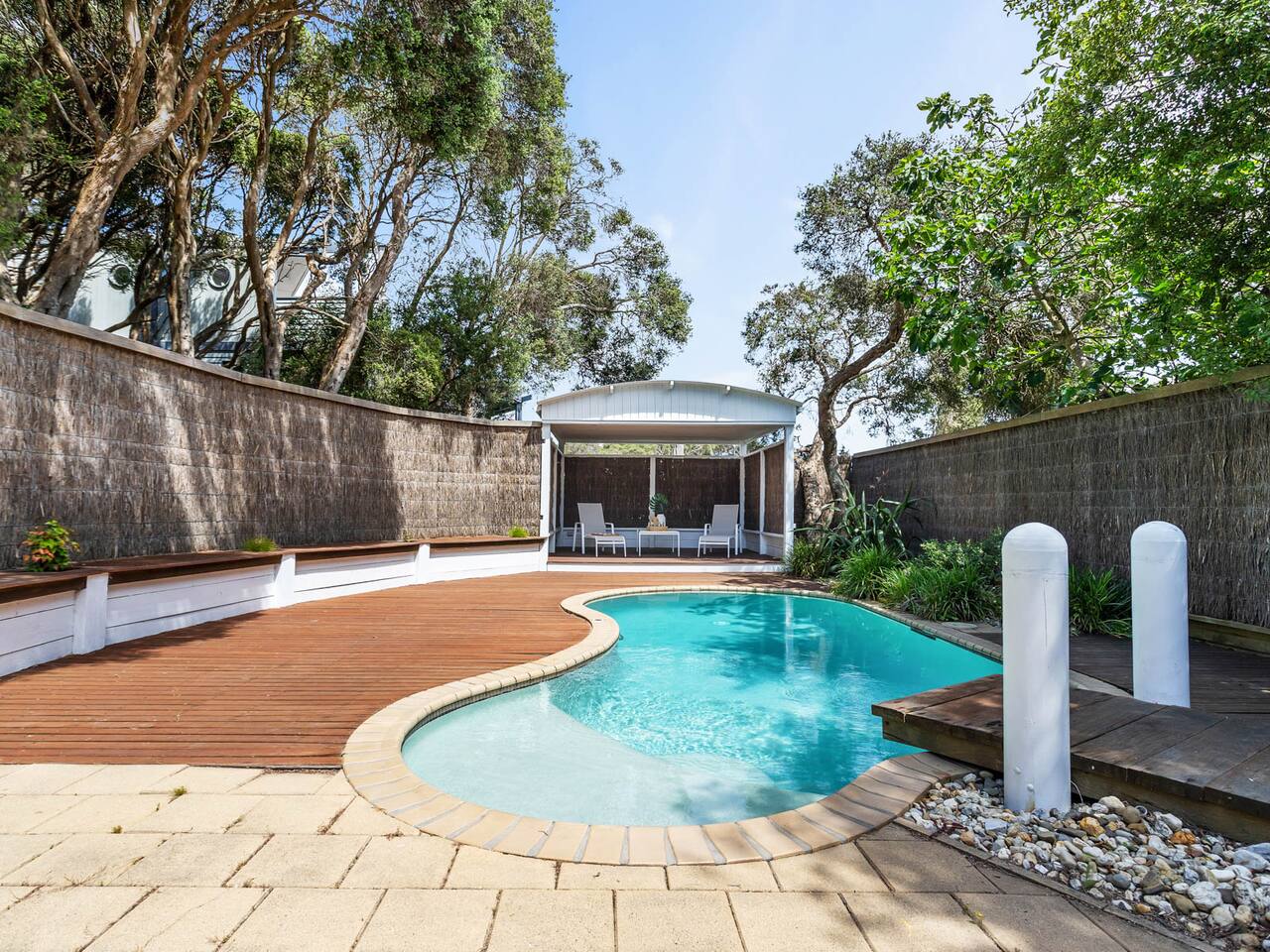 Perched high, Rye Baby is a luxurious executive home providing lovely views. Warm, luxurious and stylish, and spanning over three levels of wonderful living with the guesthouse on the lower level separate from the main home, this is a spacious home ready to create wonderful memories. Rye Baby allows you to immerse yourself in a beautiful location where coastal living perfectly collides with Australian charm. Whether you’re looking for a relaxing beach getaway to soak up the sun or chill out amongst the rolling hills of vineyards in the exquisite Mornington Peninsula hinterland sipping on the region’s finest Pinot Noir, there is something for everyone. The open plan gourmet kitchen has all your cooking essentials and will have you cooking up a storm like Curtis Stone or Jamie Oliver. With ample refrigeration, there is plenty of space to store artisan food produced by locals that you can pick up at the many local markets, or along the “Wine Food Farmgate Trail” in the Mornington Peninsula hinterland. Don’t forget to pick up an award-winning bottle of Pinot Noir for which the Mornington Peninsula region is famous, or perhaps a bottle of Pinot Gris or Pinot Grigio – two of the newer varietals in the region. Amidst tropical landscaping, enjoy your morning coffee on the private side deck, or soak up the warm morning rays of sun on one of the sun lounges on the entertainment deck - the choice is yours. Stay at Rye Baby, there's plenty of space for everyone to escape and find their little piece of paradise in the home, both inside and out. You will think you could be in a tropical location when you relax with a solar heated swimming pool (Note - the temperature of pool cannot be guaranteed - it is subject to the amount of sunlight). The house is in a residential street with surrounding permanent tenants so we only rent to mature guests that will remain respectful to our neighbours. The house is to be used for relaxation-style holidaying, loud parties are prohibited.