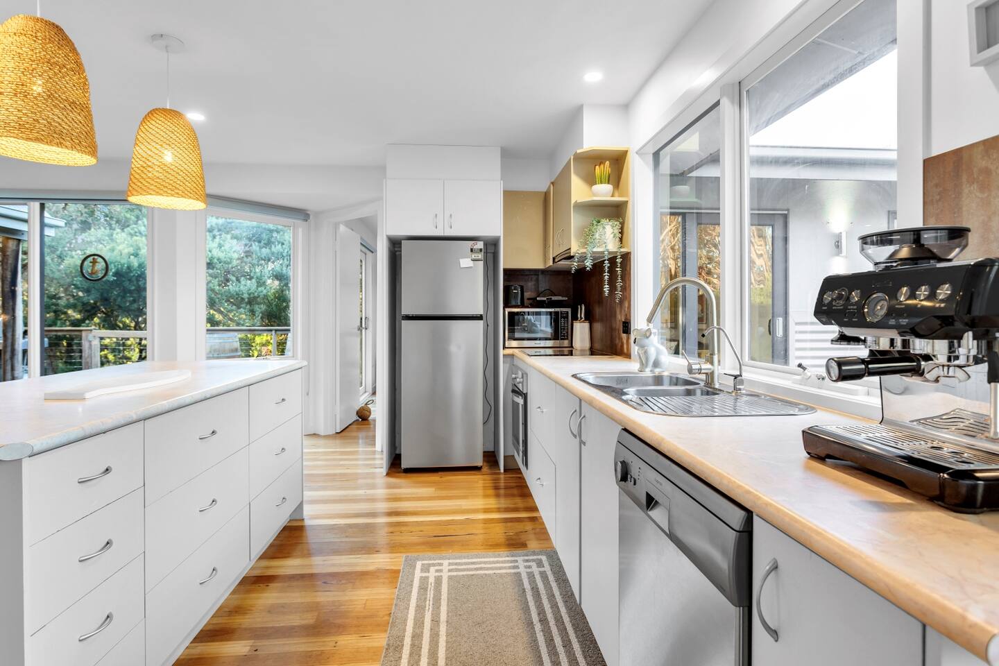 Welcome to a luxurious coastal retreat, boasting five beautifully appointed bedrooms and two bathrooms, accommodating up to 9 guests. Come and escape to a surf coast sanctuary nestled in the tranquil beauty of St Andrews Beach. This exquisite home invites you to spend time with your loved ones. Step into a haven of relaxation as spacious living areas seamlessly connect to a generous entertaining deck, thoughtfully adorned with an outdoor lounge, BBQ, chiminea, and a covered dining area.
