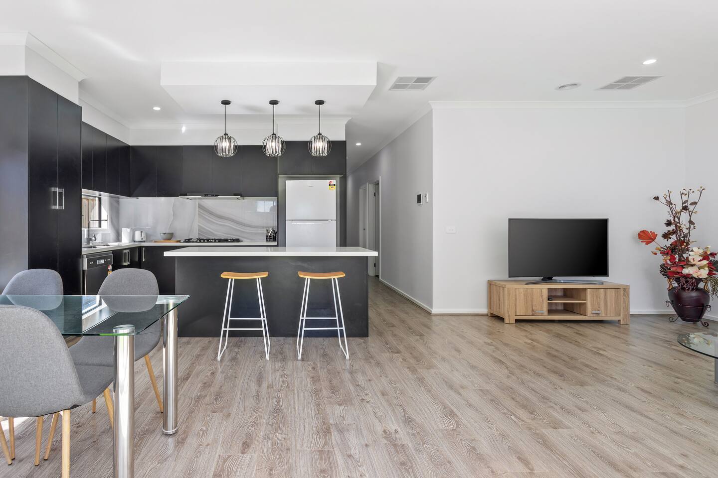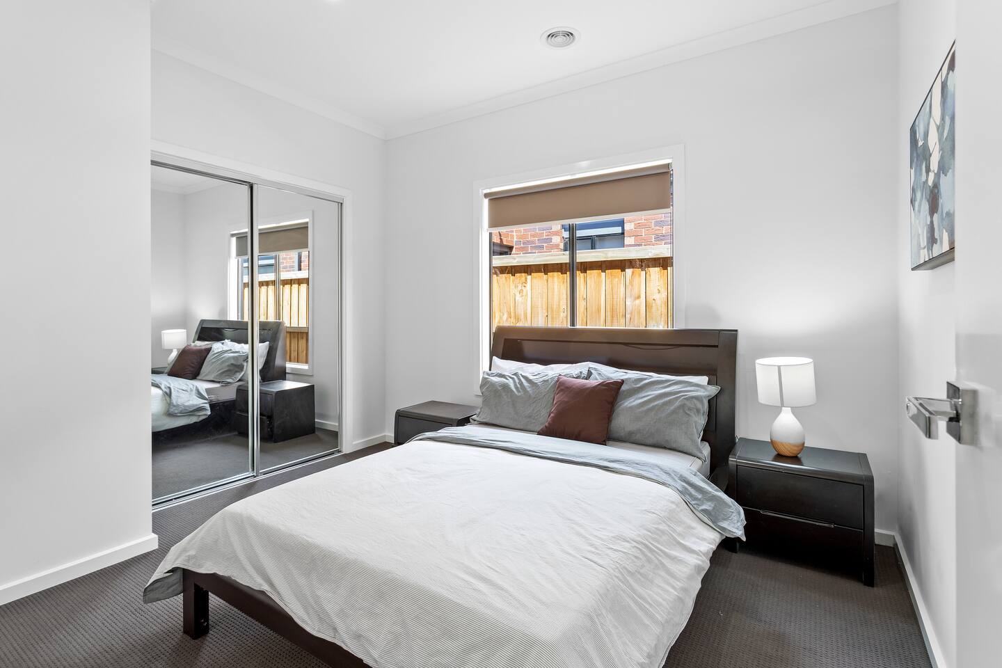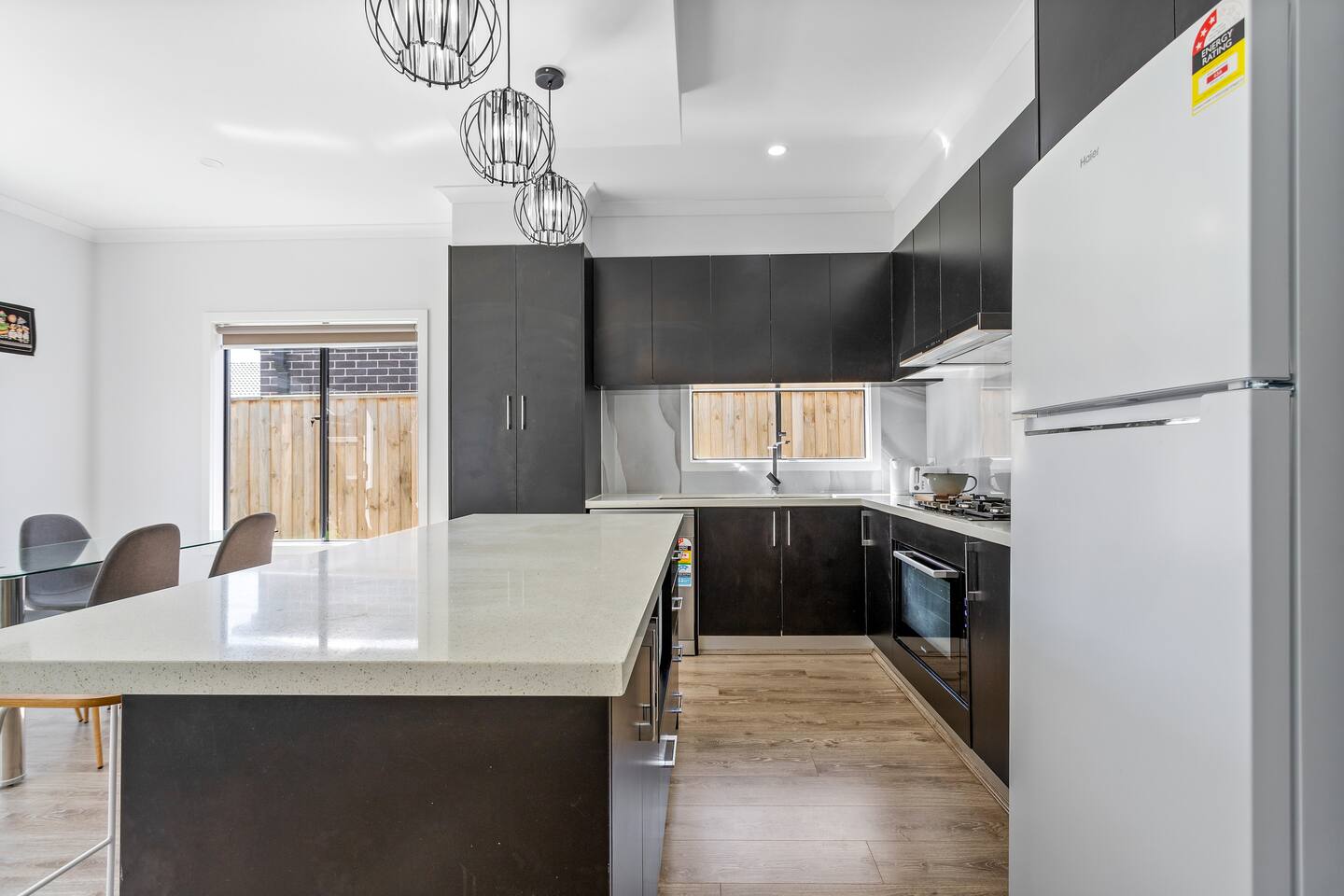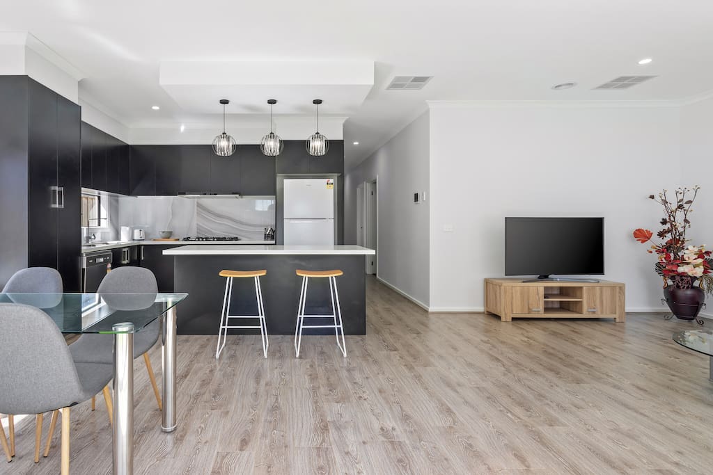This stylish and modern home situated in Fraser Rise. It acts as an ideal base to explore Caroline Springs and the surroundings. All provided with linen, towels and WIFI. Instantly shift into the comfort, relaxation and quality of this brand-new contemporary home with open plan living, dining and kitchen area. This family home comfortably accommodates 6 guests. Take advantage of the nearby shopping and parks. This peaceful and family-friendly location offers the ultimate getaway.