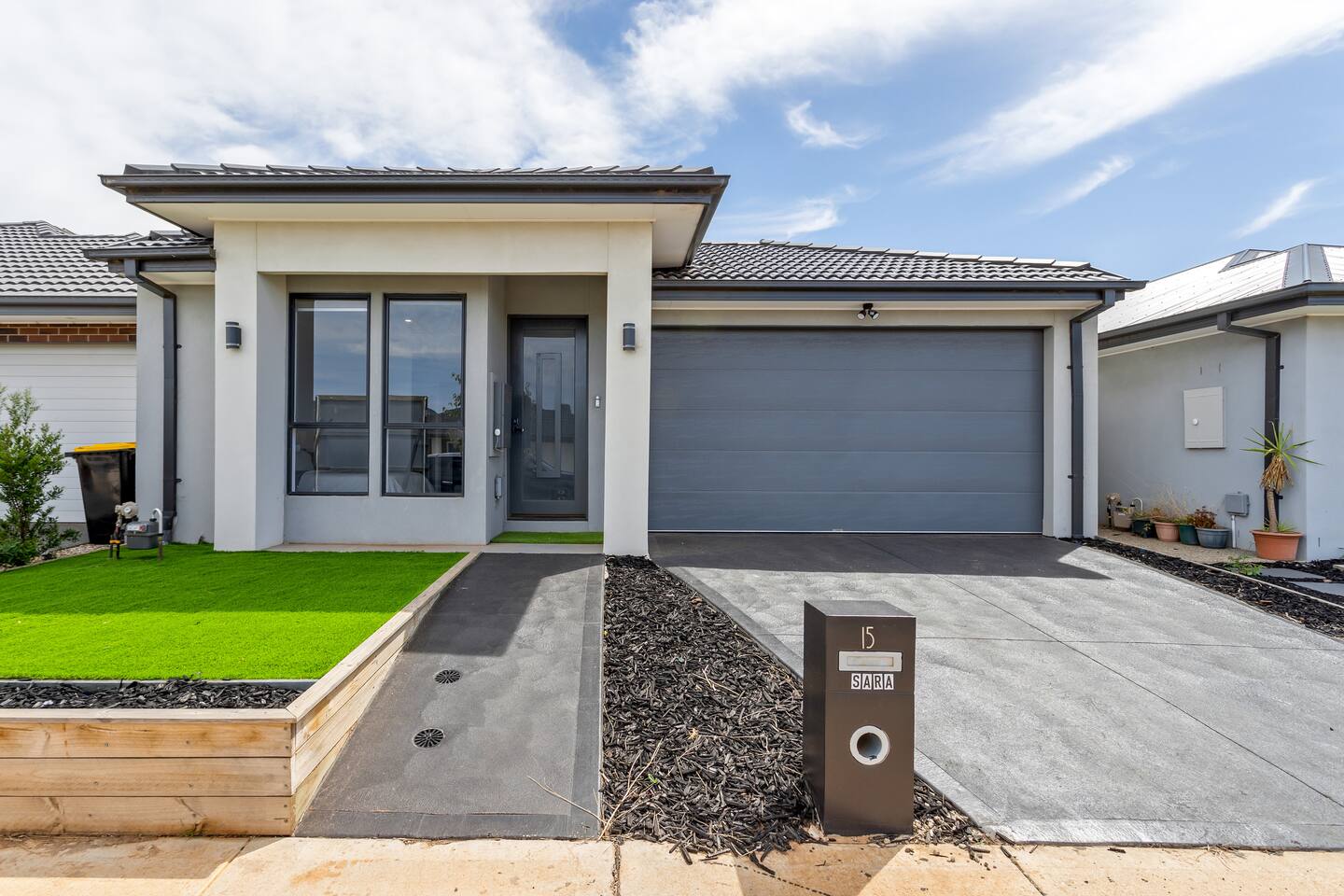 New family-friendly home situated in the heart of Weir Views. It acts as an ideal base to explore the City of Melton & surrounds. Instantly shift into the comfort, relaxation and quality of this brand-new contemporary home. It features an open-plan layout, with a fresh and natural colour scheme with stark contracts, wood surfaces, and tasteful décor. It is equipped with all essential items and must-have kitchen equipment for short or long-term stays. This lovely home in Fraser Rise offer three bedrooms, the master with an ensuite and a separate main bathroom. The light-filled kitchen dining and living area is all located at the end of the hallway towards the back of the home. This tranquil open-plan space is the hub of the home and is well-equipped with all of your needs. Relax and unwind in the second living area which also features a study desk and chair and books to read. SARA has its separate laundry with a door that exists to the side of the home for backyard access. You can park your car in the double lock-up garage or the driveway. The perfect opportunity for your family or friends to have quality time together. The house is in a residential street with surrounding permanent tenants so we only rent to mature guests that will remain respectful to our neighbours. The house is to be used for relaxation-style holidaying, loud parties are prohibited.