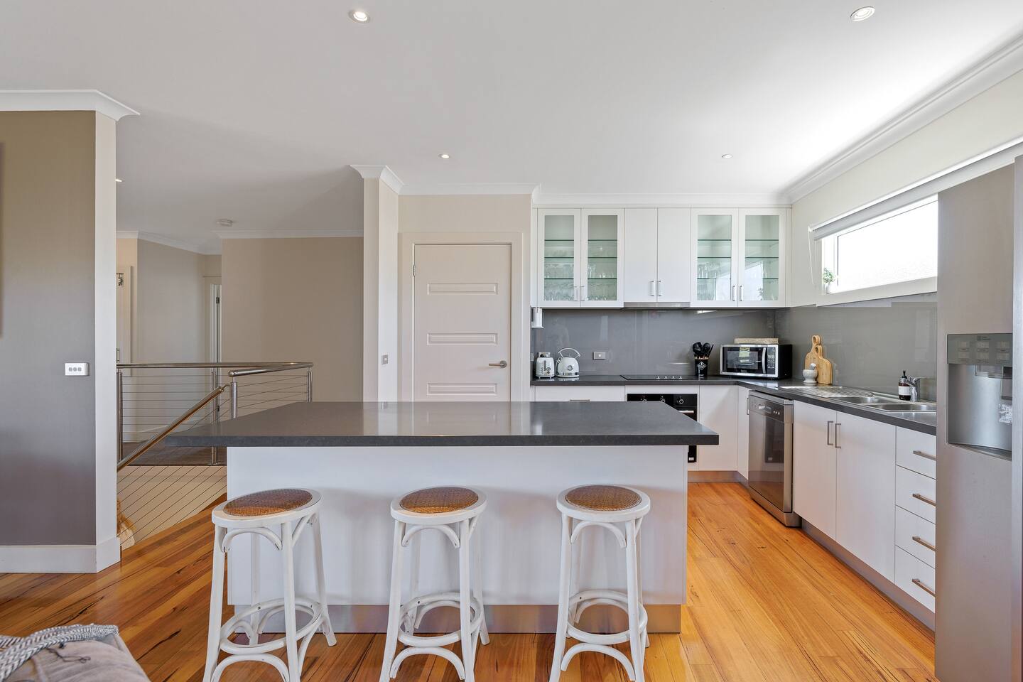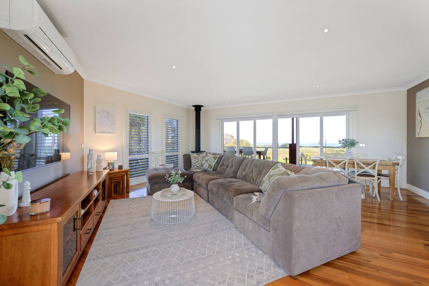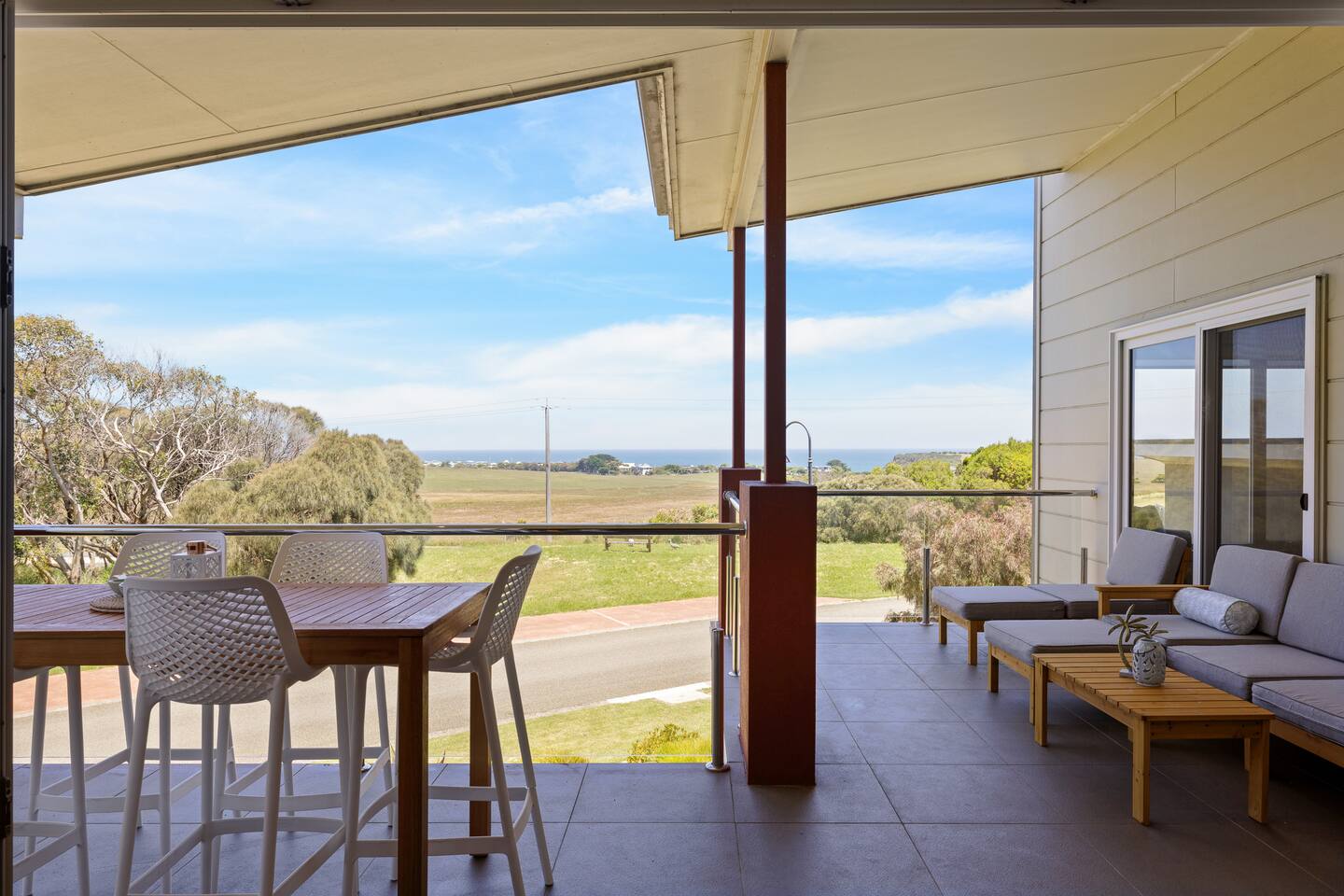 This well-presented double-storey home is perfectly positioned and cleverly designed to capture the expansive water views and overlooking farmlands. With four bedrooms and three bathrooms, SeaVision Escape sleeps 12 guests. Your family will be comfortably accommodated with everything close by when you stay at this centrally-located place with a 5 min drive to the beach. This peaceful and family-friendly location offers the ultimate getaway for your next holiday.