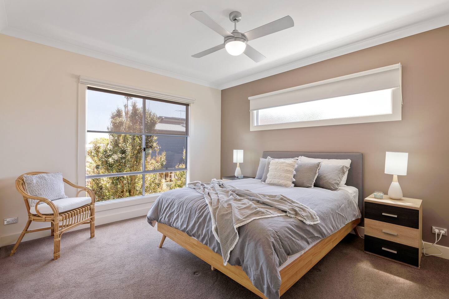 This home sleeps 12 guests across 4 bedrooms. Bedroom 1 - 1x Queen size bed (upstairs) Bedroom 2 - 1x Queen size bed (upstairs) Bedroom 3 - 1x Queen size bed (ground level) Bedroom 4 - 2x Tri-bunks (double size bottom / Single size top) (ground level) What to bring: fitted sheets, flat sheets, pillowcases, beach towels, bath towels, tea towels, hand towels and bathmats. Guests have the choice of: BYO Linen / Towels - Guests bring fitted sheets, flat sheets and pillowcases for each bed. Guests also bring their own beach, bath and tea towels, hand towels, and bathmats. Refer to the home's description for the bedding configurations. Linen Set Hire - Guests can hire a complete linen set for $30 per bed, including a fitted sheet, flat sheet and pillowcases. Bunk beds are classed as two beds. All beds are the same price. Towel Set Hire - Guests can hire a towel set for $10 per person, including one bath towel and 2 tea towels (for only the first ordered towel set). Bathroom Set Hire - Guests can hire a bathroom set for $10 per bathroom, including a bathmat and hand towel. Delivery Fee - If any items are hired, there will be a one-off delivery/set-up fee of $40. If the stay is longer than 7 days, ask management for any added pricing. For linen or towel hires, advise Ready Set Stay with 48 hours’ notice, as last-minute requests may not be possible. Lost or damaged hired linen/towels may incur costs. Ready Set Stay will assume no linen or towel sets are requested for hire unless advised. We ask all guests to please clean the BBQ after use, or a $50 fee will be charged.