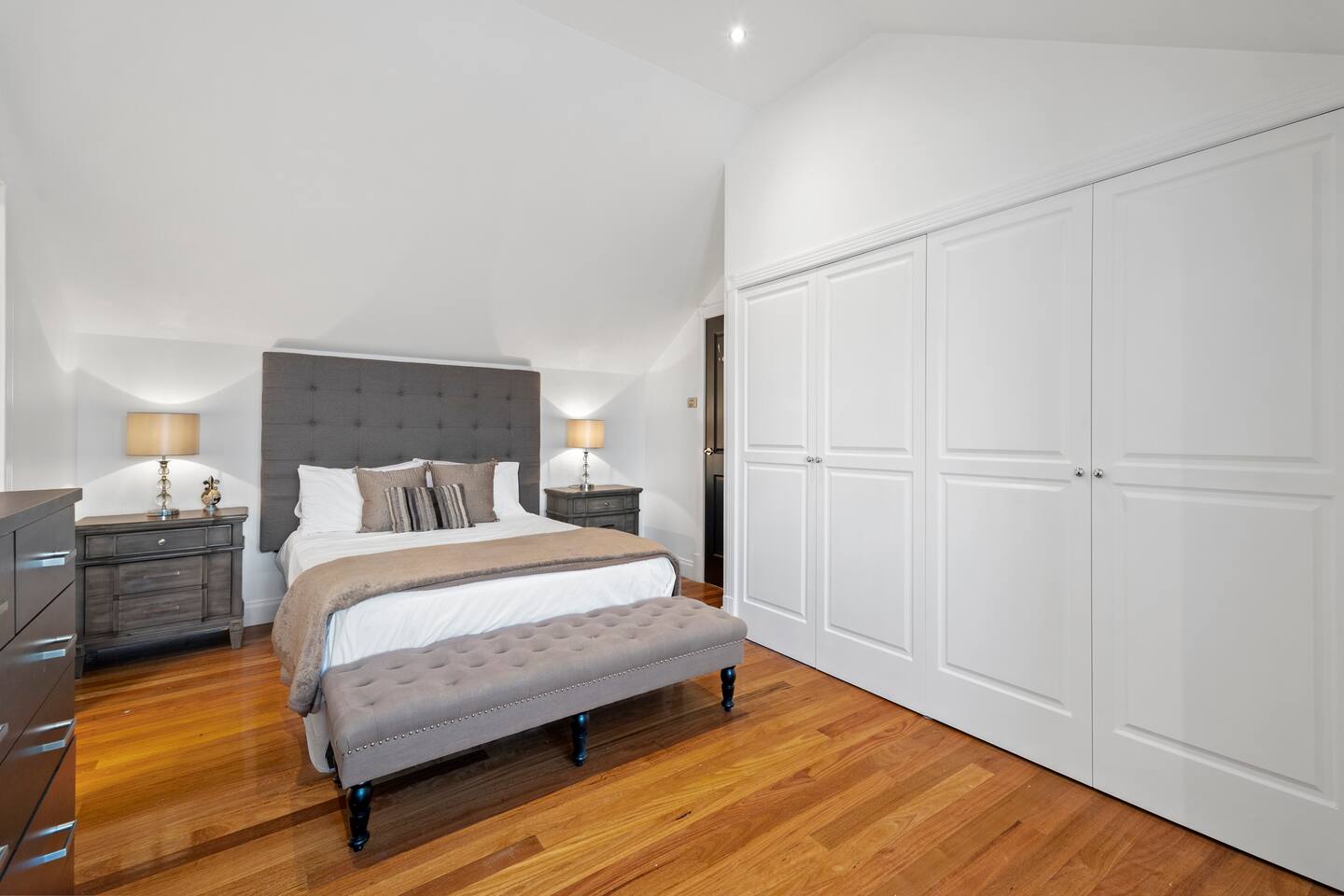 This home sleeps eight people across four bedrooms. Bedroom 1: 1x King Bed - Downstairs Bedroom 2: 1x Queen Bed - Upstairs Bedroom 3: 1x Queen Bed - Upstairs Bedroom 4: 2x King Single Beds - Upstairs Guests are supplied with fresh linen and towels. Lost or damaged linen/towels may incur costs. We kindly request that all guests clean the BBQ after use; otherwise, a $50 fee will be charged. Parties are not allowed, and noise and music must be kept to a minimum due to the presence of permanent residents in the surrounding area. There is to be no music after 9 pm during the weekdays, including Sunday, and after 11 pm on Friday and Saturday nights. Disobeying these rules may result in losing your bond. We have permanent residents as neighbours with young kids. Disturbance to our neighbours and police involvement, including excessive noise, is prohibited and may result in losing your bond.