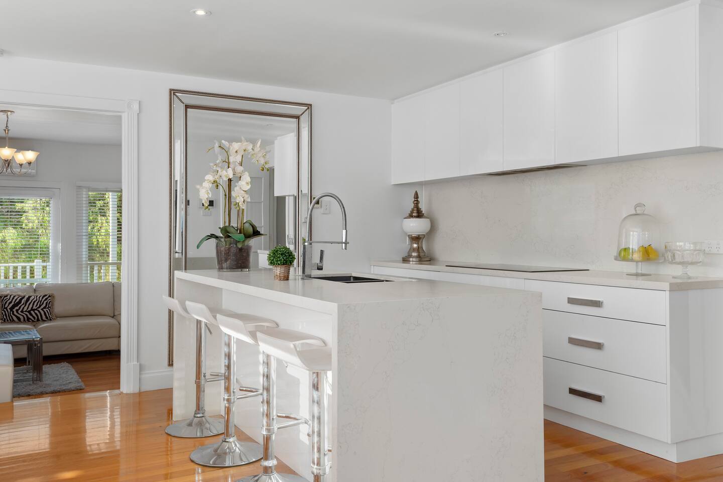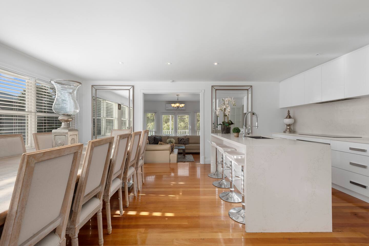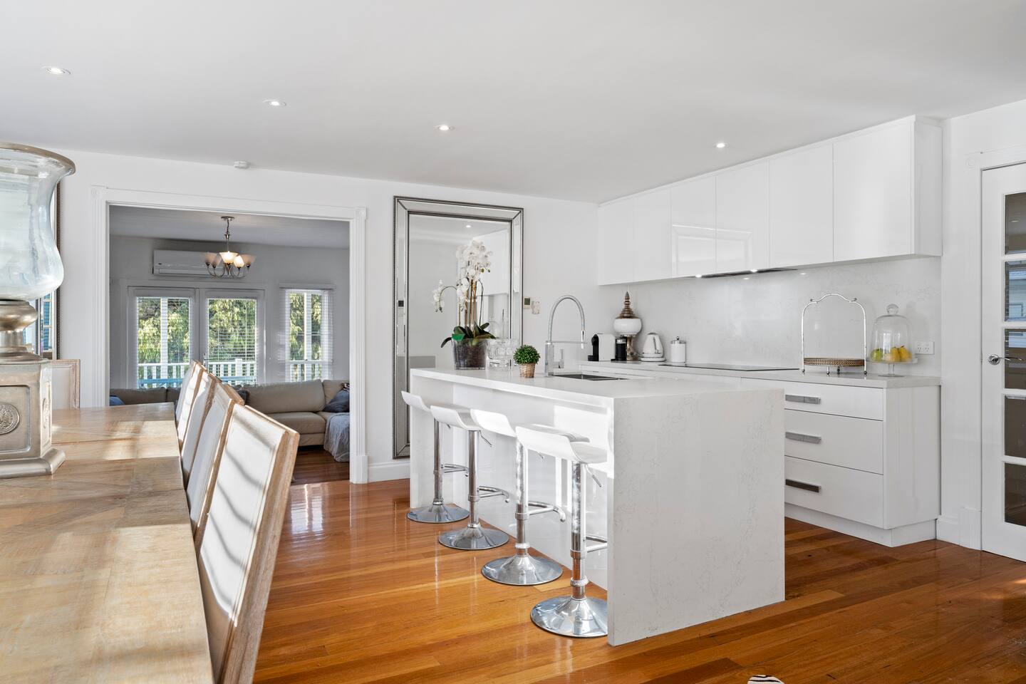 Enjoy a family-friendly stay in this 4-bedroom home, complete with a study, offering character and charm. It's perfect for a family getaway or a few couples enjoying the coast. This home is adorned with crisp, clean white and cream furniture, featuring plush bedding and high-end pieces. The master suite has a walk-in robe, an ensuite, and multiple living areas. There is plenty of space for guests to spread out and relax. The house is located on a residential street with surrounding permanent tenants, so we only rent to mature guests who will remain respectful to our neighbours. The house is to be used for relaxation-style holidaying, and loud parties are prohibited.