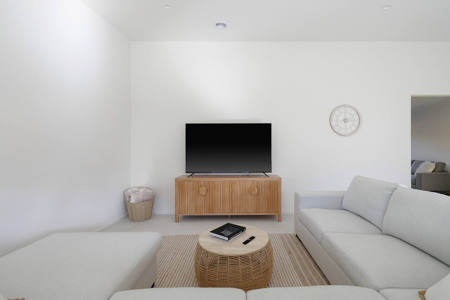 This lovely home offers the following: Dishwasher Nespresso Coffee machine - BYO pods Blender Airfryer Microwave Toastie Machine WIFI Washing machine Smart TVs in living areas Portacot Games and books Garage Fully fenced backyard Gas BBQ Firepit in the backyard Ample parking space Side gate access for parking a boat or jet ski HEATING AND COOLING Ducted heating and refrigerated cooling