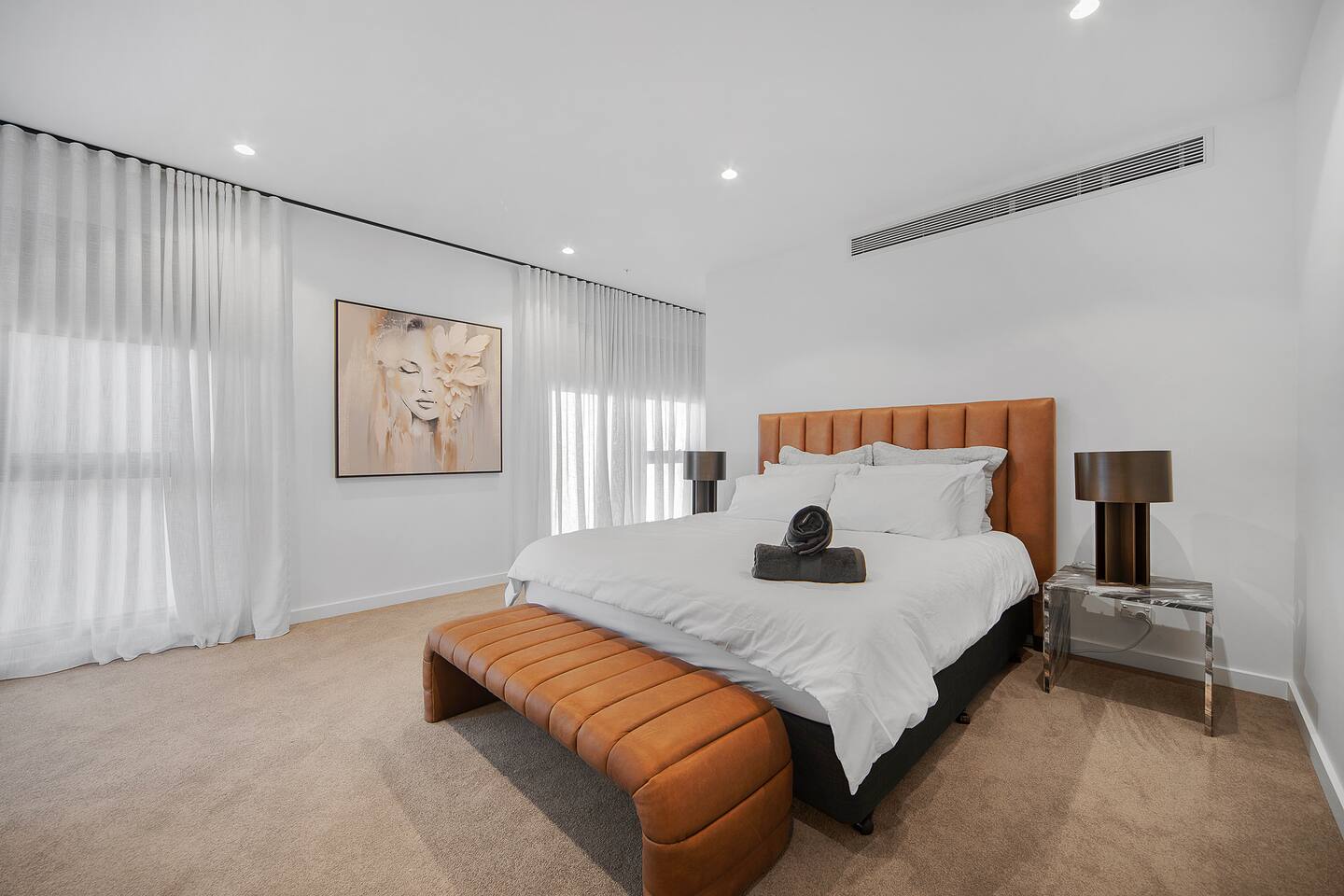 A Statement in Bayside Luxury Living. Step into a world of refined sophistication at The Evelyn Coco Republic, where elevated design and uncompromising comfort come together in one of Port Melbourne’s most exclusive settings. This light-filled residence spans 211sqm and has been meticulously curated by the iconic Coco Republic, showcasing a sleek, contemporary interior with bespoke finishes and furnishings that radiate quiet luxury. At the heart of the home lies a designer kitchen, a dream for any home chef, featuring premium Miele appliances, stone benchtops, and all the essentials for preparing gourmet meals with style and ease. Whether you're crafting a casual breakfast or an intimate dinner, the space offers seamless flow into the open-plan living area, where an 85-inch Sony Smart TV and unlimited Wi-Fi provide an elevated entertainment experience. Floor-to-ceiling windows frame breathtaking, uninterrupted views of Melbourne’s glittering skyline and the lush Port Melbourne community gardens. Step out onto two expansive balconies, the perfect backdrop for your morning coffee or evening wine as you soak in the city lights or gentle sea breeze. The home features reverse-cycle air conditioning in every room, allowing you to tailor the temperature to your comfort, no matter the season. Each of the three bedrooms has been beautifully appointed for rest and retreat. The master suite features a king-size bed with plush linens, a walk-in robe, a private sitting area, balcony access, and a stunning en-suite complete with a freestanding bath. The second bedroom includes a queen bed also dressed in lovely linens, a built-in robe, and direct access to the balcony. The third bedroom features a queen bed, styled with premium linen, and includes a built-in robe, ideal for guests or additional family members. Every detail has been thoughtfully considered to enhance your stay. The fully equipped kitchen features a Miele oven and microwave, dishwasher, espresso machine, kettle, toaster, and premium cookware, making it equally suitable for extended stays as for short luxury escapes. Enjoy climate-controlled comfort year-round with zoned ducted heating and cooling, ensuring the perfect atmosphere throughout the home. Parking is effortless with secure garage access for one car, and free on-street parking is available nearby on Salmon Street and Williamstown Road for guests or visitors. From its curated interiors to its sweeping skyline views and unmatched location, The Evelyn Coco Republic is your luxurious home base for experiencing the very best of Port Melbourne. Perfectly positioned in one of Melbourne’s most sought-after bayside locations, The Evelyn Coco Republic places you at the heart of it all. Enjoy effortless access to Port Melbourne’s vibrant dining and shopping precinct, just moments from your door. Lush parklands, scenic walking trails, and family-friendly playgrounds are all within easy strolling distance, ideal for morning walks or relaxed afternoons. Take advantage of Melbourne’s world-class entertainment, with renowned sporting venues, theatres, and cultural attractions just a short drive away. For everyday convenience, Woolworths, local cafes, and boutique shops are all located within a 500-metre radius. And for those who like to stay active, you’ll find multiple gyms nearby, including Derrimut and Port Melbourne. Whether you're visiting for business, a coastal retreat, or an extended city escape, The Evelyn Coco Republic offers a luxurious blend of comfort, style, and unbeatable convenience in the heart of Port Melbourne.