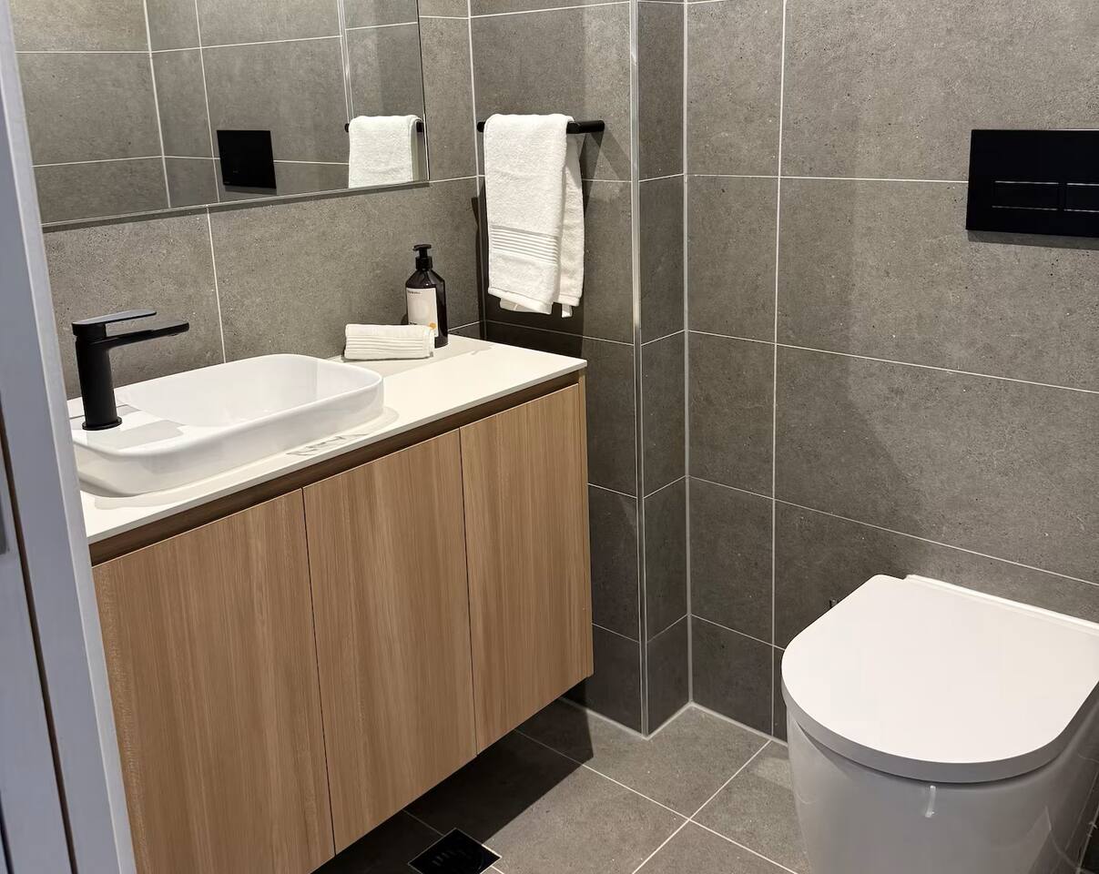 Our favourite features of the home include: Essential amenities include toiletries, towels, and linens Blackout blinds Washing machine and dryer for convenience during more extended stays Bathtub, ideal for relaxing or bathing young children Family-friendly extras such as a portacot, a highchair, kids’ books, and toys Board games for the family Smart TV with streaming capabilities Fridge and freezer Microwave and Miele oven Dishwasher Espresso coffee machine Spacious balcony perfect Secure, covered parking for one spot in a private garage Street parking – additional free street parking on Salmon Street and Williamstown Road, adjacent to the building Large balcony with stunning views HEATING AND COOLING Central system with room-by-room controls for heating and cooling.