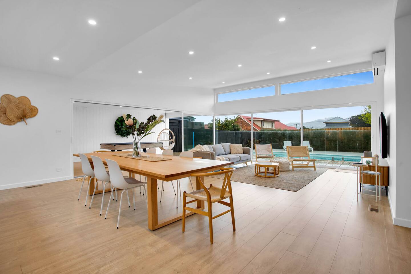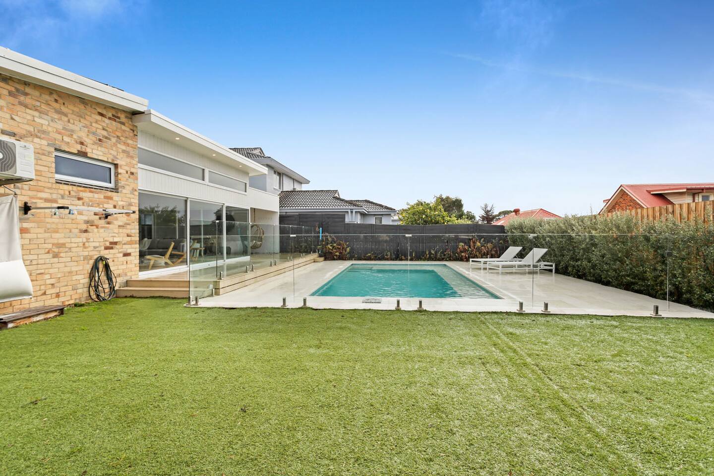 This home sleeps 12 people across four bedrooms. Main house Bedroom 1: 1 x king bed (sleeps 2) Bedroom 2: 1 x queen bed (sleeps 2) Bedroom 3: 1 x queen bed (sleeps 2) Bedroom 4: 2 x bunk beds and 2 x trundles (sleeps 6) All linens and towels will be included for your convenience. Lost or damaged hired linen/towels may incur costs. Please BYO pool towels. We ask all guests to please clean the BBQ after use, or a $50 fee will be charged. Welcome to our exquisite property, where your desires dictate your experience. With three unique listings, we offer tailored options to suit your preferences. For those seeking an unforgettable group retreat, our entire property opens its doors to accommodate up to 16 guests. Alternatively, we've curated two distinct havens for your choice: one promising beachside and pool perfection, while the other caters to a serene weekend getaway. Rest assured, even if two bookings align, privacy remains paramount. Separate entrances and driveways ensure an exclusive domain for each group. The thoughtful layout guarantees a seamless, unobtrusive coexistence – no shared spaces, no overlaps: your experience, area, or sanctuary.