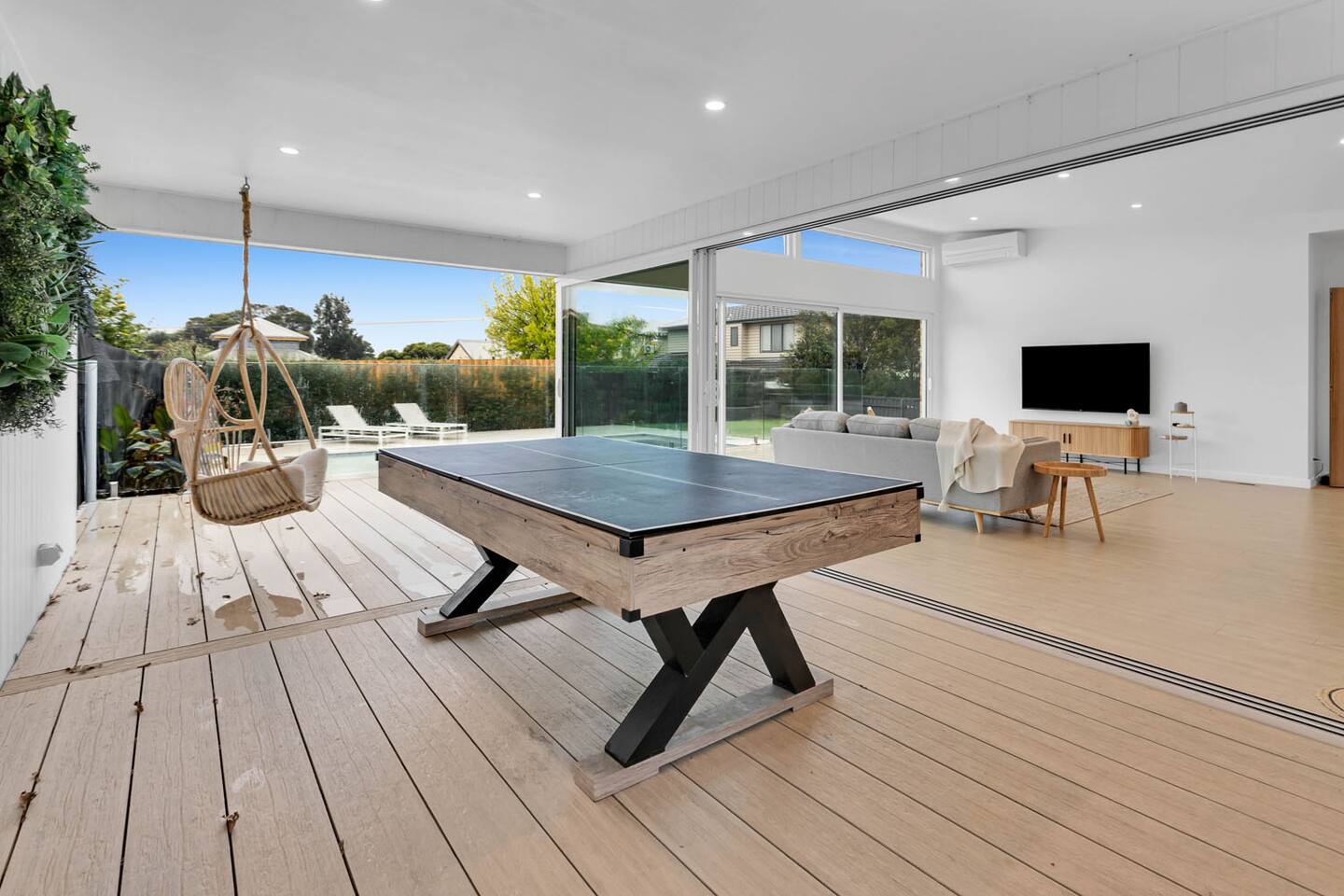 This lovely home offers: House and guest house Large driveway Dining table for eight guests Stools for five guests Baby cot - BYO Linen Double fridge and double induction oven Dishwasher and butler pantry Soda machine KFEE coffee machine with frother - BYO pods Bar area with cocktail makers, bar fridge and glasses Bright skylights Laundry with washer and dryer Large LG smart TV Beautiful lawn and deck chairs Inground solar heated pool Hanging egg chair Pool table and table tennis table Umbrella for outside Kids table and chairs Books for kids Extra pillows and blankets Clothesline Pet friendly Fully fenced 2nd lounge room with TV and Apple box Fireplace - BYO firewood Wall heater Comfortable large lounge CCTV is at the home and only viewed if there is an issue HEATING/COOLING Split system in the loungeroom and three bedrooms (bedrooms 1, 2 and 4) Loungeroom wall heater Wood burning fireplace - BYO firewood PARKING To comply with council regulations and ensure a positive relationship with our neighbours, the house allows only three cars to be parked onsite. Street parking is strongly discouraged. NOISE MONITORING DEVICES To ensure a comfortable experience for all guests and respect for our neighbours, we have installed noise monitoring devices inside and outside the home. These devices do not record conversations but measure noise levels. We will only contact you if the noise exceeds a reasonable level. This home is registered for short stay with the Mornington Peninsula Council: STRA0252/23.