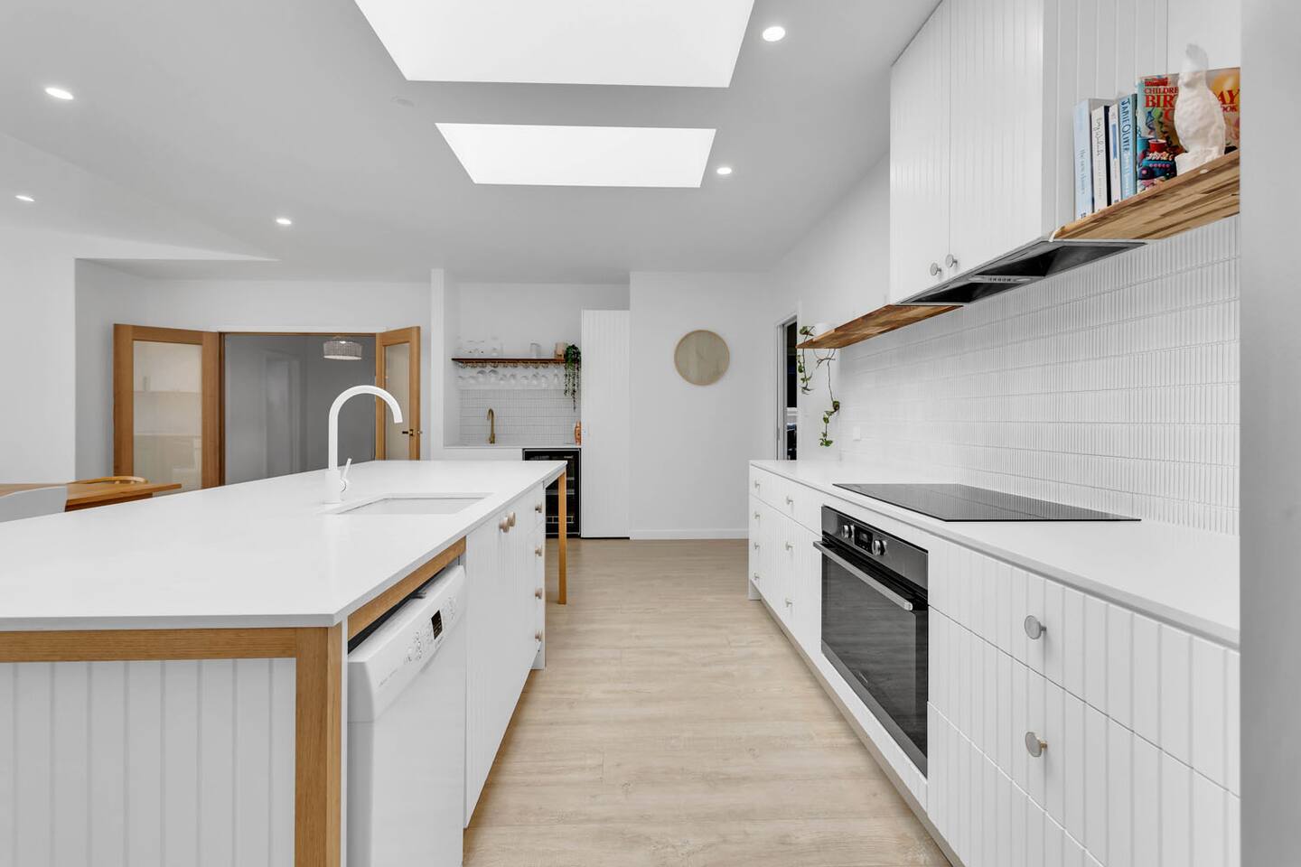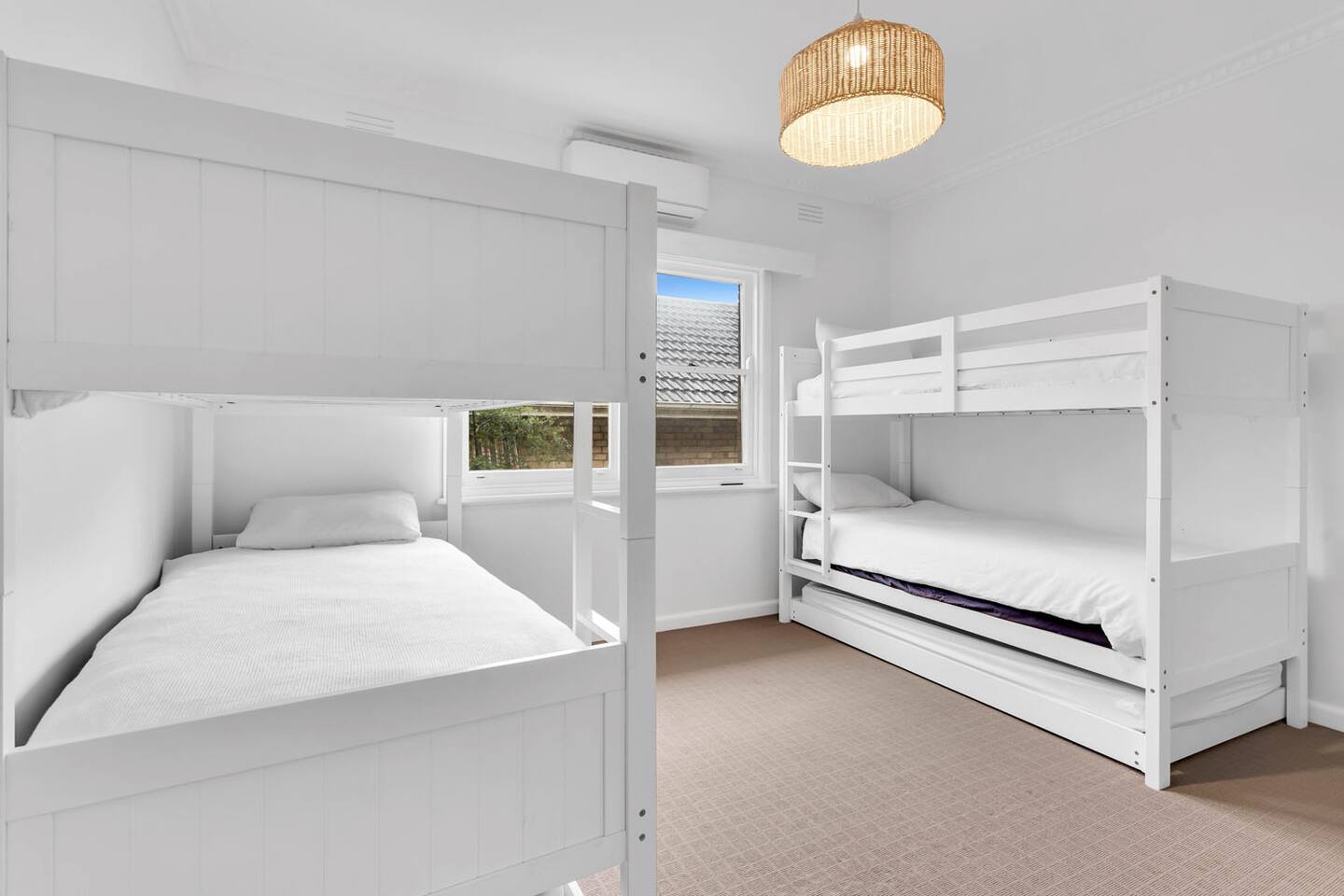 This home sleeps 16 people across 5 bedrooms. Main house upstairs Bedroom 1: 1 x king bed (sleeps 2) Bedroom 2: 1 x queen bed (sleeps 2) Bedroom 3: 1 x queen bed (sleeps 2) Bedroom 4: 2 x bunk beds and 2 x trundles (sleeps 6) Guest house downstairs Bedroom 5: 1 x queen bed and 1 x bunk bed (sleeps 4) All linens and towels will be included for your convenience. Lost or damaged hired linen/towels may incur costs. Please BYO pool towels. We ask all guests to please clean the BBQ after use, or a $50 fee will be charged.
