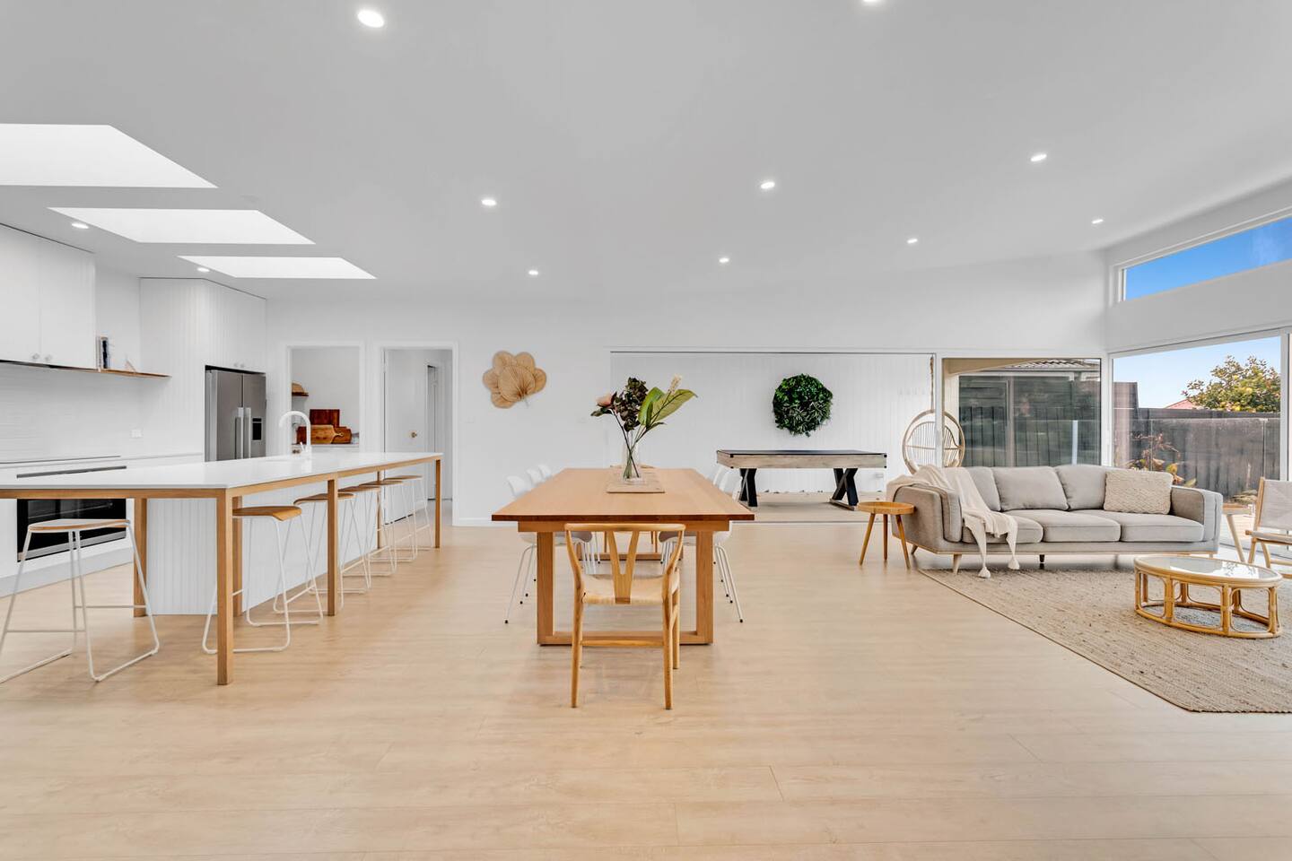 This lovely home offers: House and guest house Large driveway Dining table for 8 guests Stools for 5 guests Baby cot - BYO Linen Double fridge and double induction oven Dishwasher and butler pantry Soda machine KFEE coffee machine with frother - BYO pods Bar area with cocktail makers, bar fridge and glasses Bright skylights Laundry with washer and dryer 2 separate toilets Large LG smart TV Beautiful lawn and deck chairs Inground solar heated pool Hanging egg chair Pool table and table tennis table Umbrella for outside Kids table and chairs Books for kids Extra pillows and blankets Clothesline Pet friendly Fully fenced 2nd lounge room with TV and Apple box Fireplace - BYO firewood Wall heater Comfortable large lounge CCTV is at the home and only viewed if there is an issue HEATING/COOLING Split system in the loungeroom and 3 bedrooms (bedrooms 1, 2 and 4) Loungeroom wall heater Wood burning fireplace - BYO firewood PARKING To comply with council regulations and ensure a positive relationship with our neighbours, the house and cottage allow only four cars to be parked onsite. Street parking is strongly discouraged. NOISE MONITORING DEVICES To ensure a comfortable experience for all guests and respect for our neighbours, we have installed noise monitoring devices inside and outside the home. These devices do not record conversations but measure noise levels. We will only contact you if the noise exceeds a reasonable level. This home is registered for short stay with the Mornington Peninsula Council: STRA0252/23.