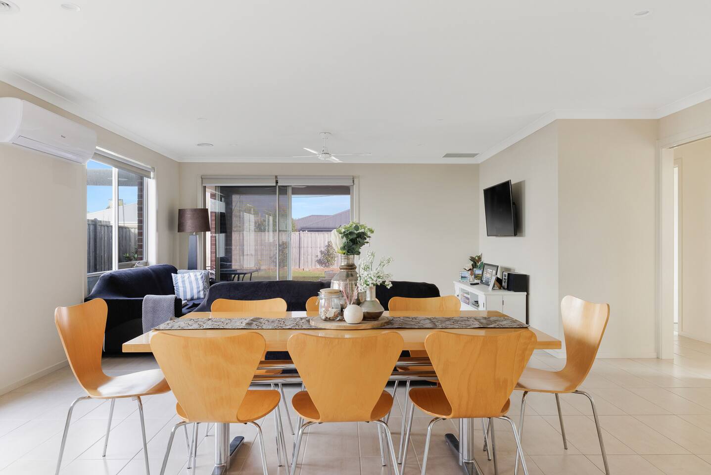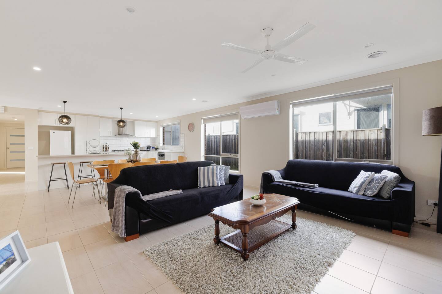 Some of the great features this home has to offer are: Immaculately presented large family 4-bedroom home Fully fenced for privacy and security Open-plan kitchen with dishwasher, microwave, kettle, and toaster 2 lounge rooms, each with its TV for entertainment options Dining table for 6 guests and 4 stools for flexible seating arrangements 2 separate toilets and 2 bathrooms for convenience Laundry with washing machine and dryer for easy laundry management Wonderful bath for luxurious relaxation Large backyard with lush grass for outdoor enjoyment HEATING AND COOLING 2 bedrooms and the loungeroom have ceiling fans Split system in the lounge room Ducted heating