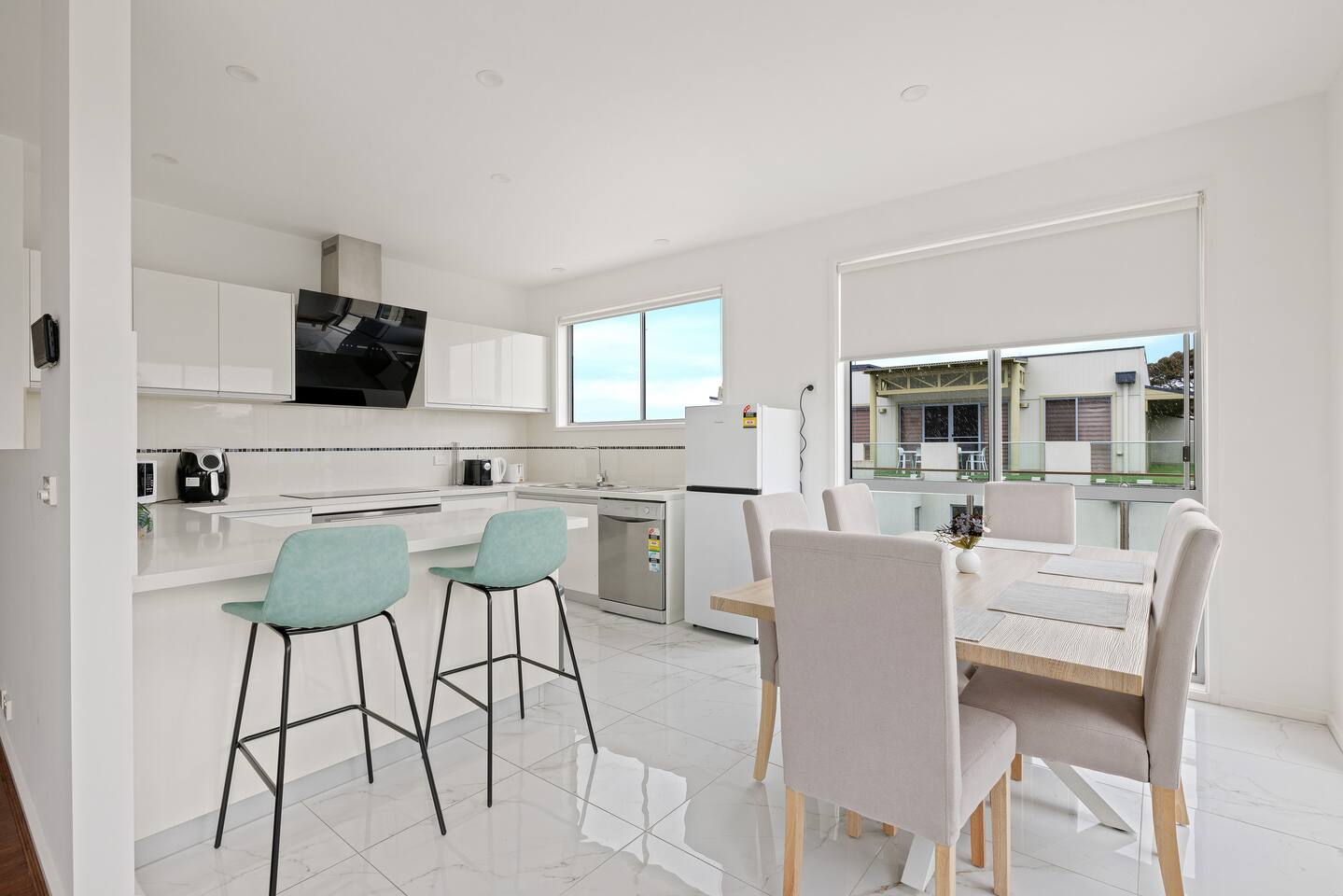 This lovely home offers the following: All linen included WIFI Modern fully equipped kitchen Indoor dining for 6 guests Dishwasher, toaster, microwave, coffee machine, air fryer and kettle BBQ Smart TV with Netflix Highchair and portacot (BYO cot linen) Games Comfy new beds Dryer and washing machine Large wrap-around balcony 2 undercover parking spaces Lots of surrounding other free parking options HEATING/COOLING Split system (heating/cooling) - main living room