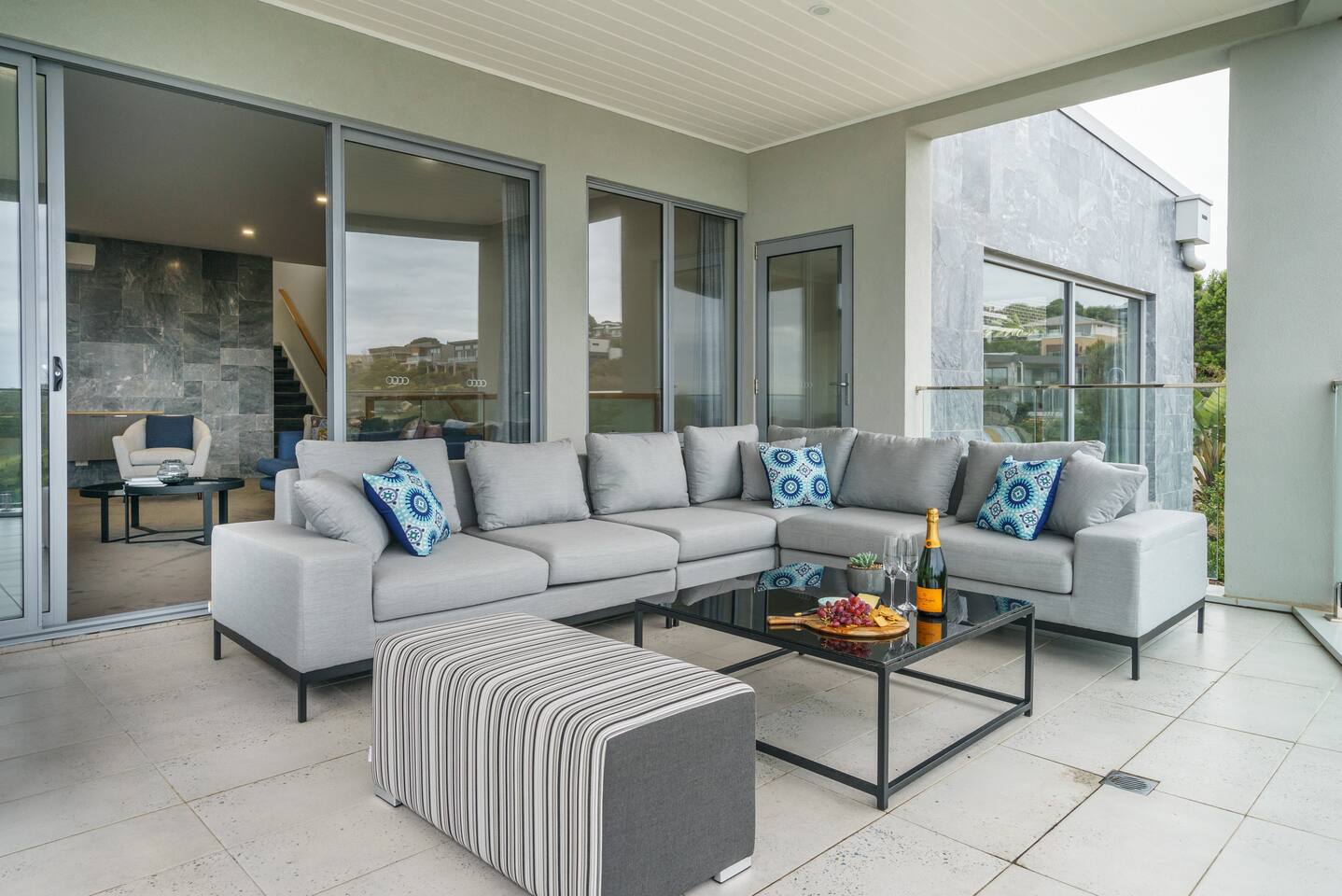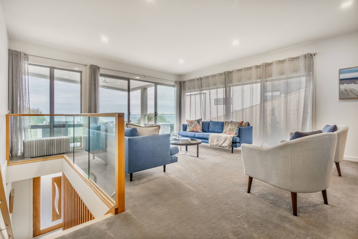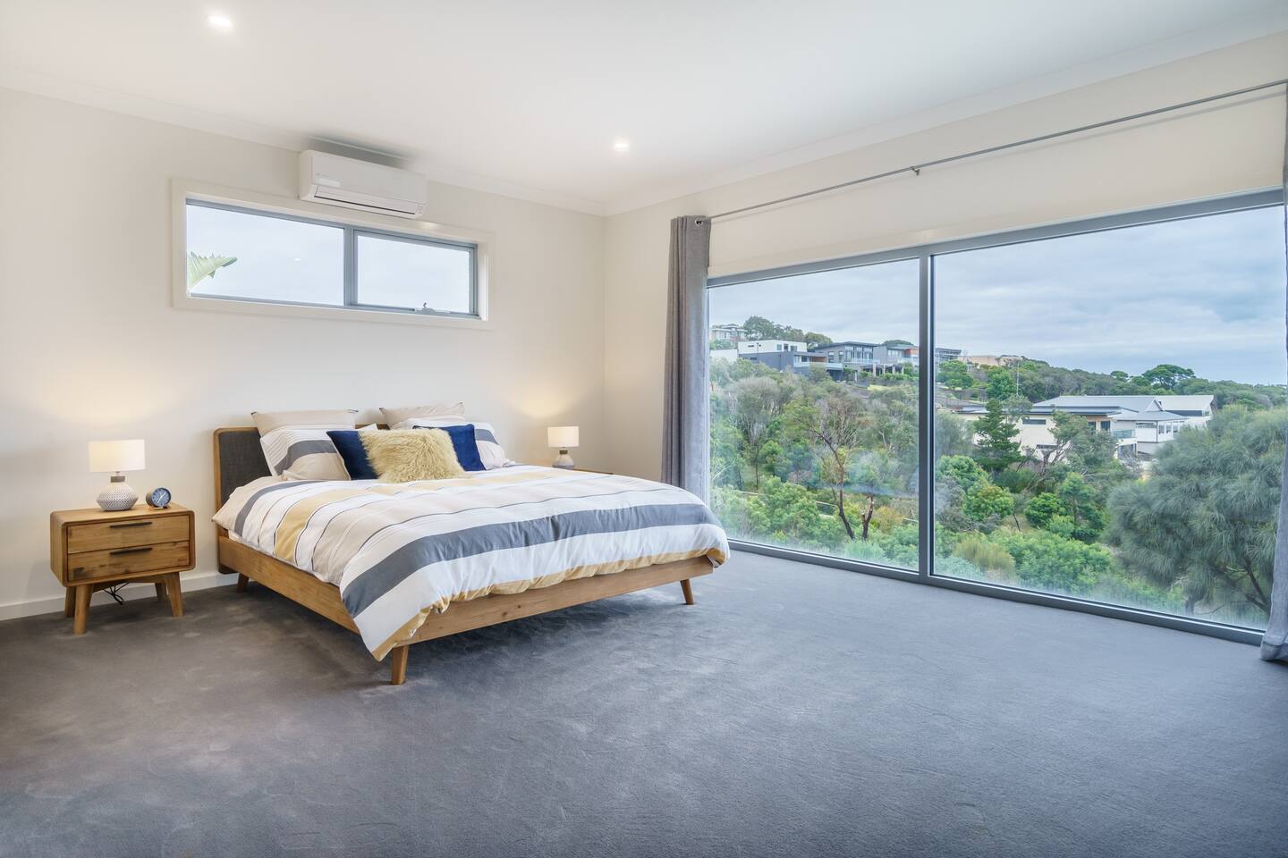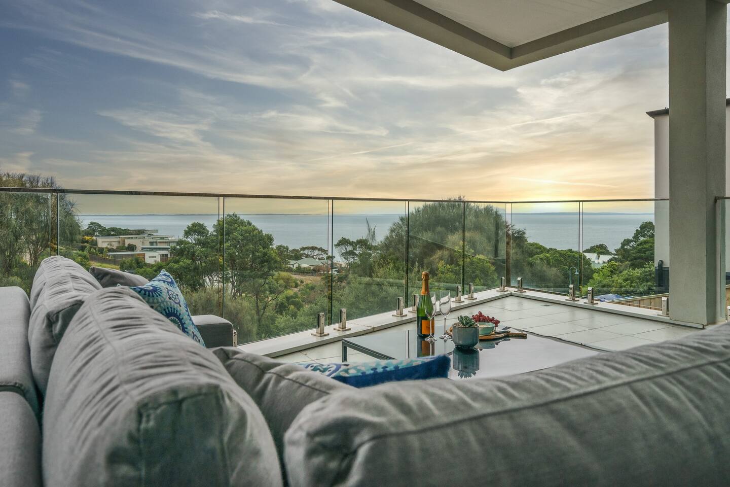 Sleek, sophisticated and stylish and with panoramic views of Port Phillip Bay, you will enjoy entertaining friends, and watching many glorious sunsets with family. Designer flair straight from the pages of a magazine can be found in the formal living room and captivating views no matter where you stand, lead you out onto the large undercover balcony where you will spend many evenings taking in the serene views of the bay. Boasting over 40 squares under the roofline with 4 bedroom accommodation including an enormous master with executive ensuite, plus another generous bedroom with ensuite. Your entertainer's kitchen will have you feeling like a sous chef with its chic benchtop with breakfast bar, butlers pantry, and “De Longhi” stainless steel appliances including all your cooking essentials. Bring along Nespresso-compatible coffee pods for the coffee machine – plus the view of the bay whilst preparing. The rear courtyard features an undercover alfresco area with a ceiling fan, which has a landscaped wall garden and leads around to a second viewing area that also takes in the bay with comfortable seating. The double garage that you're welcome to park in also has a table tennis table ready for rounds of fun with family or friends. It's an amazing house you don't want to leave. 2kms to The Pillars 2kms to Mount Martha Lookout A few mins drive to Balcombe Estuary Boardwalk Circuit The house is in a residential street with surrounding permanent tenants so we only rent to mature guests that will remain respectful to our neighbours. The house is to be used for relaxation-style holidaying, loud parties are prohibited.