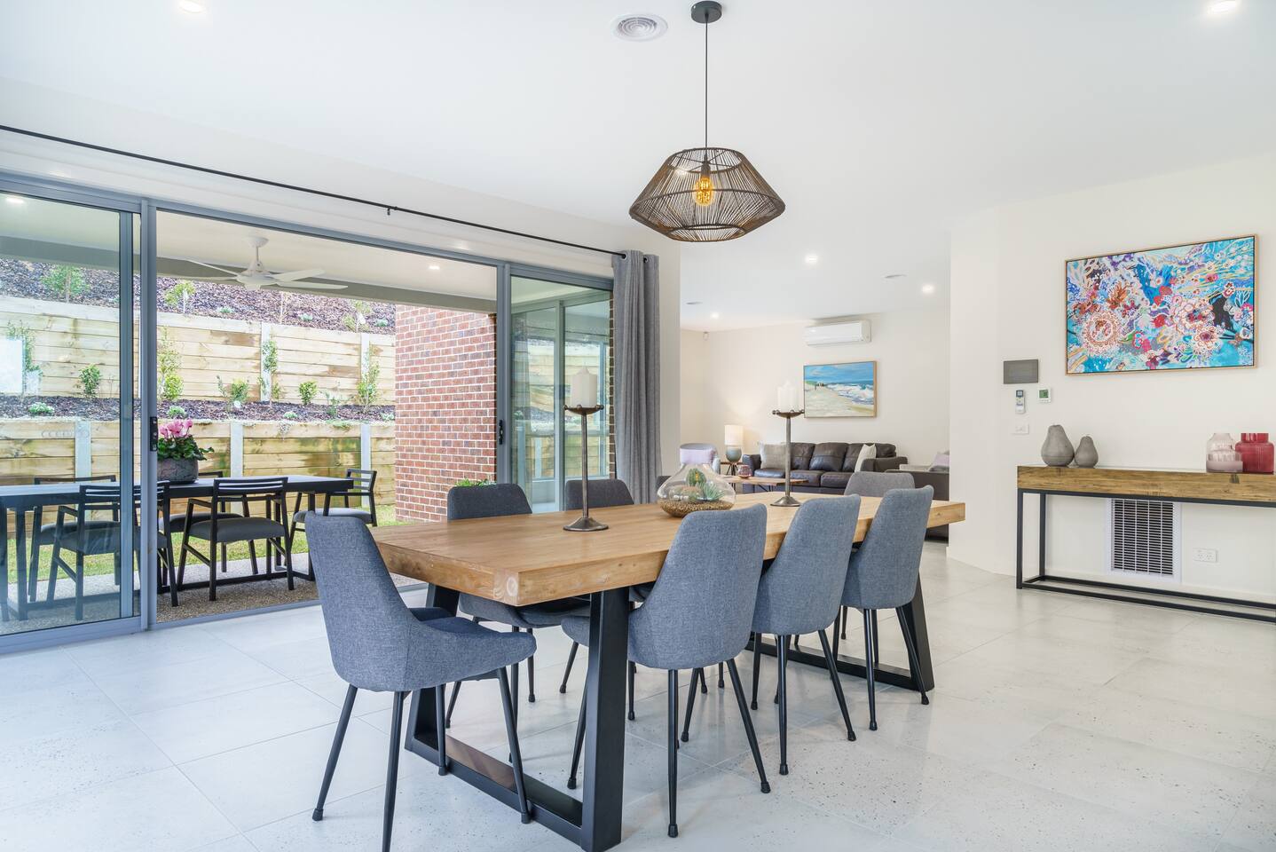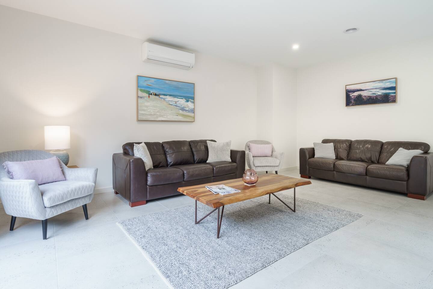 This lovely home offers: Sleeps 8 guests Full linen and towels included 4 x bedrooms 3 x bathrooms (2 ensuites) 3 x toilets Modern fully equipped kitchen Dishwasher Nespresso Coffee machine Laundry with washing machine, iron and ironing board Dining area 2 x living areas that include TVs Split system heating and cooling Landscaped gardens Outdoor entertaining area Free unlimited WIFI with Netflix Outdoor BBQ Double garage Parking area Large balcony Outdoor setting for 8 guests