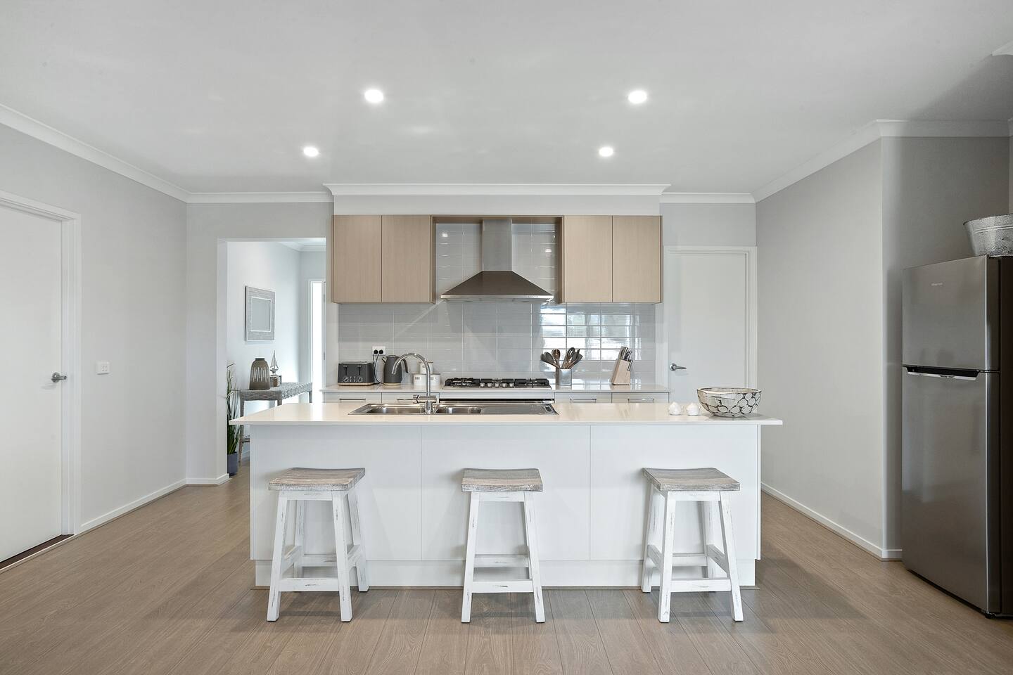 This home sleeps 9 guests across 4 bedrooms. Bedroom 1: 1 x King Bed Bedroom 2: 1 x Queen Bed Bedroom 3: 1 x Tri bunk beds Bedroom 4: 2 x Single beds What to bring: fitted sheets, flat sheets, pillowcases, beach towels, bath towels, tea towels, hand towels, and bathmats. Guests have the choice of: BYO Linen / Towels - Guests bring their own fitted, sheets, flat sheets, and pillowcases for each bed. Guests also bring their beach, bath, and tea towels along with hand towels and bathmats. Refer to the home’s description for the bedding configurations. Linen Set Hire - Guests can hire full linen set for $30 per bed which includes a fitted sheet, flat sheet, and pillowcases. Bunk beds are classed as two beds. All beds are the same price. Towel Set Hire - Guests can hire a towel set for $10 per person which includes 1 bath towel and 2 tea towels (for only the first ordered towel set). Bathroom Set Hire - Guests can hire a bathroom set for $10 per bathroom which includes a bathmat and hand towel. Delivery Fee - If any items are hired, there will be a one-off delivery/set-up fee of $40. If the stay is longer than 7 days, ask management for any additional pricing. For linen or towel hires, advise Ready Set Stay with 48 hours' notice as last-minute requests may not be possible. Lost or damaged hired linen/towels may incur costs. Ready Set Stay will assume no linen or towel sets are requested for hire unless advised. Please remember to bring linen for the baby cot if you're using it. ** We ask all guests to please clean the BBQ after use, or a $50 fee will be charged.