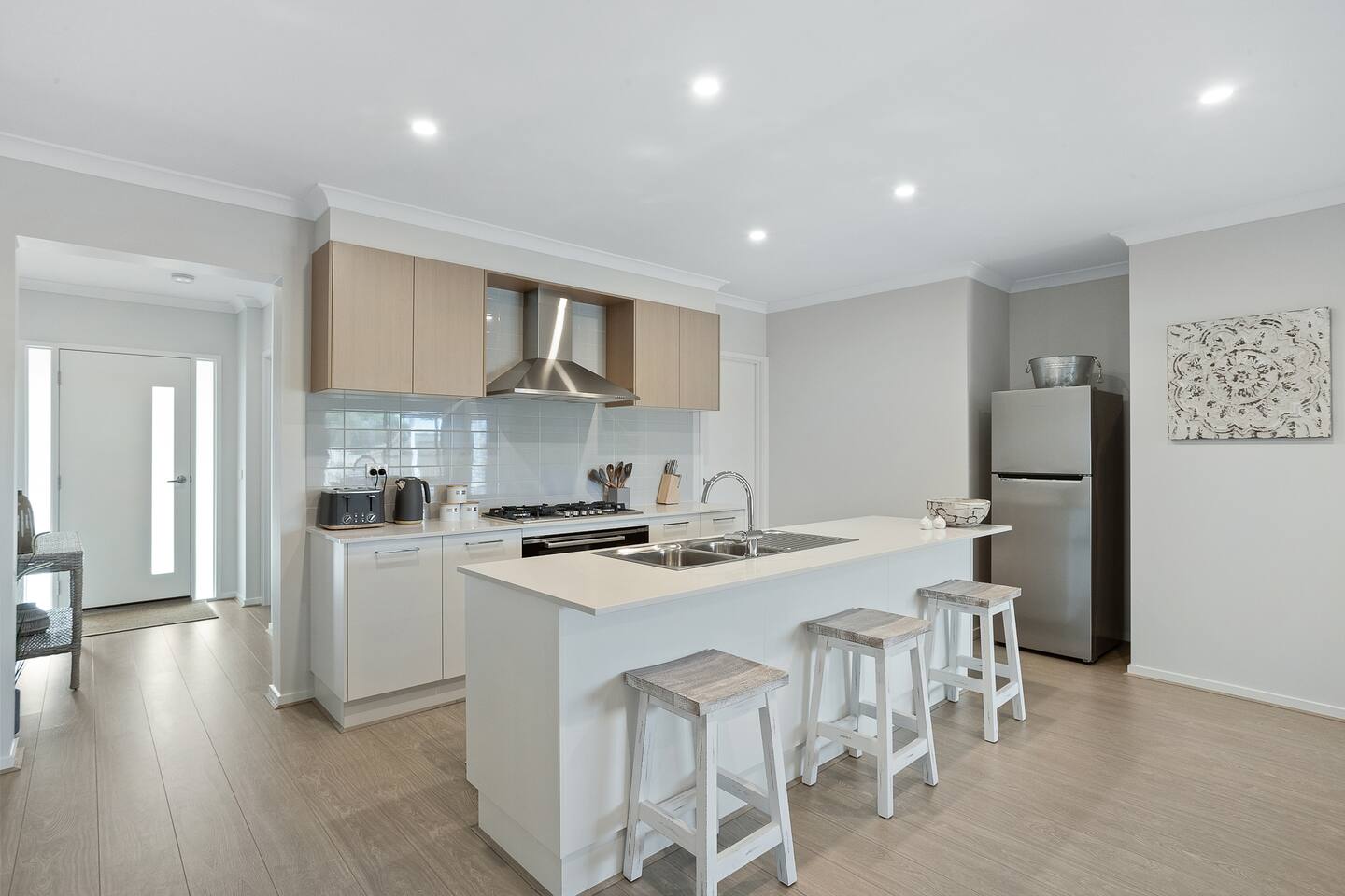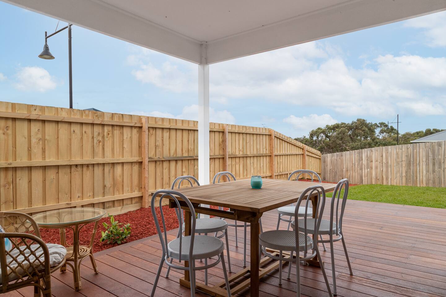 Welcome to Wait 'N' Sea - the perfect coastal escape for families and friends looking to relax, recharge, and make lasting memories. This beautiful, light-filled home comfortably sleeps up to nine guests across four spacious bedrooms and offers all the modern comforts you need for a carefree getaway. From the moment you arrive, you’ll feel the fresh sea breeze, the warmth of natural light, and the ease of open-plan living that invites you to unwind. Set just minutes from beautiful beaches, world-class golf courses, and local shops, this thoughtfully designed home is ideal for adventure and relaxation. Inside, you’ll find two inviting lounge rooms with TVs, a fully equipped kitchen with a dishwasher and coffee machine, and a welcoming dining space that flows effortlessly out to a sun-drenched patio. Fire up the BBQ, enjoy a glass of wine outdoors, or stretch out with a book while the kids explore the toybox, play games, or challenge each other to a ping-pong match. The home is wonderfully set up for families, with a secure fenced yard and all the essentials for little ones, including a cot, highchair, and change table. Every detail has been considered to ensure a seamless stay with two modern bathrooms, a washer and dryer, ceiling fans, fast WiFi, and a double garage. Whether you’re soaking up the coastal charm, heading to the beach for a swim, enjoying a round of golf, or simply spending quality time together in the comfort of this serene home, Wait 'N' Sea is your go-to holiday haven. Let the sea breeze and laid-back luxury carry you into holiday mode – your perfect escape starts here. The house is in a residential street with surrounding permanent tenants, so we only rent to mature guests who will remain respectful to our neighbours. The house is to be used for relaxation-style holidaying; loud parties are prohibited. We hope you enjoy your stay.